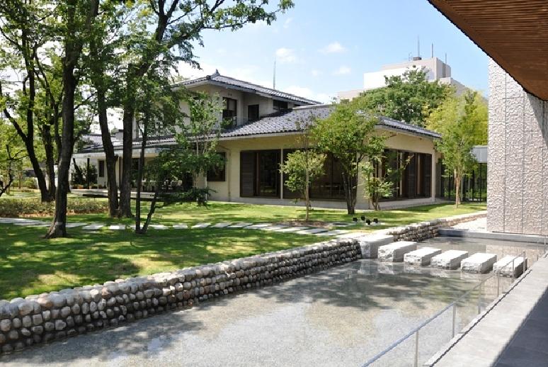 松川沿いにある旧知事公館の建物や緑豊かな庭園を活用した研修施設とレストランが設置。