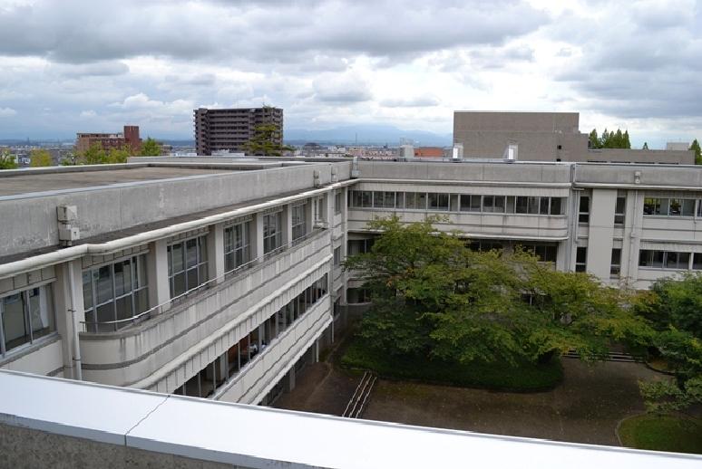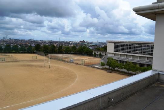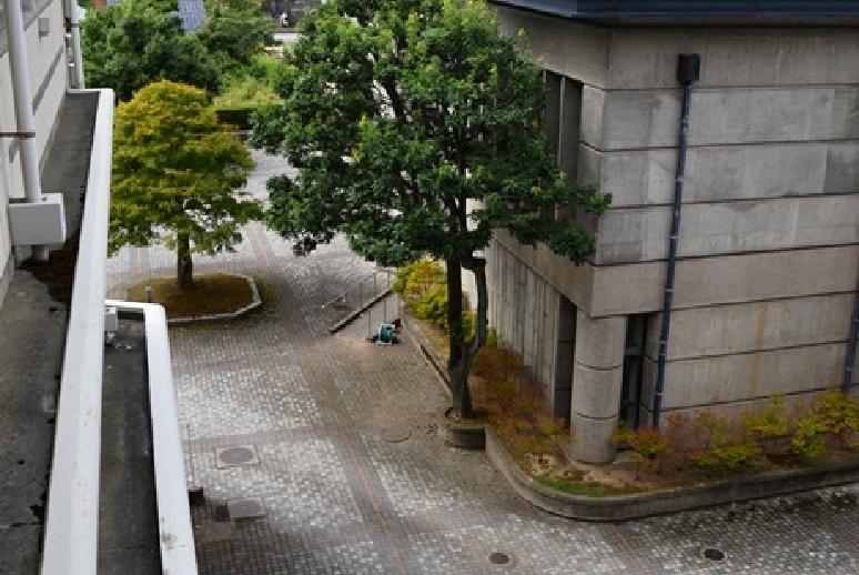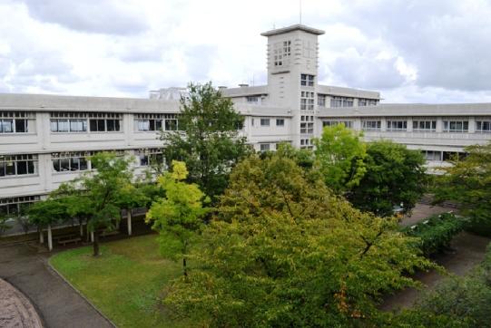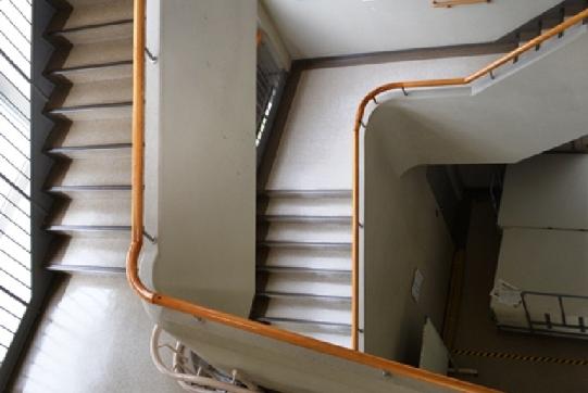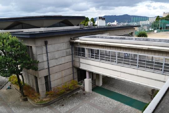 レトロな佇まいで、階段が特徴的。学校以外にも美術館や大学にも見える。