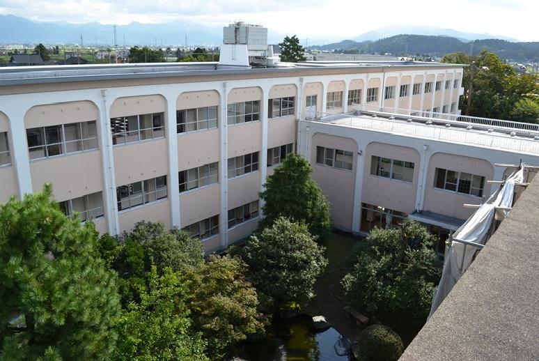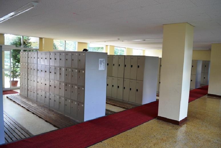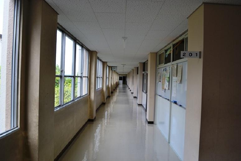 講堂がレトロで雰囲気がある。旧女子高だったので、校舎内は大変清潔に保たれている。