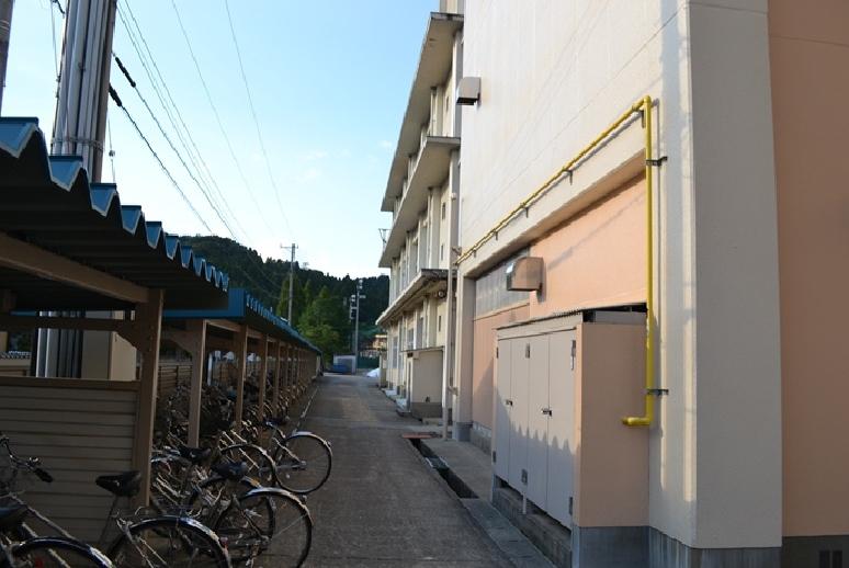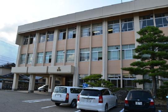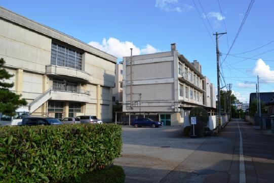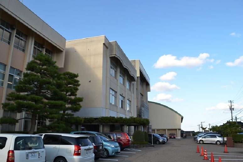 石動駅から市街地を抜けた高台にある。校舎に向かう道が特に風情がある。教室から市内が一望できる。