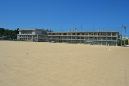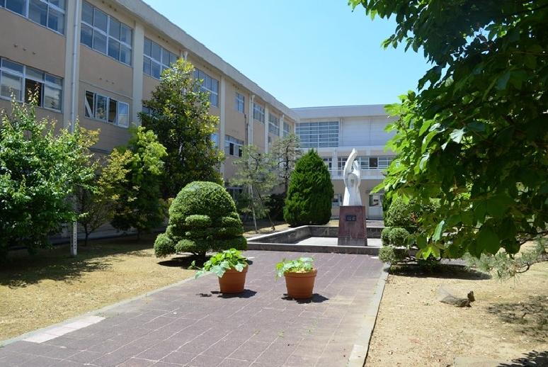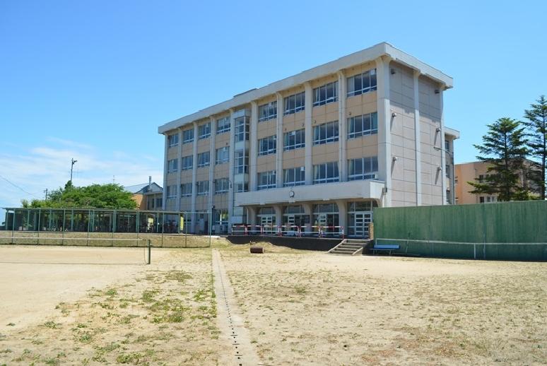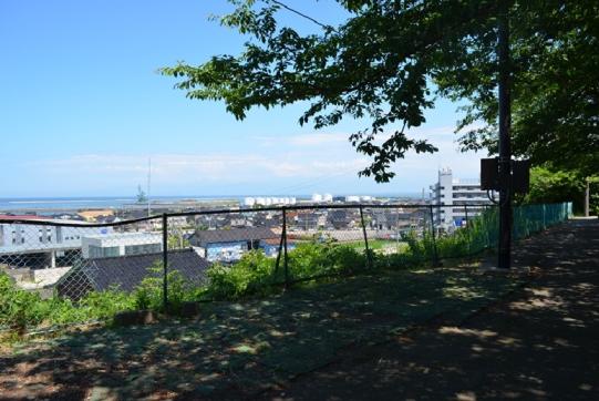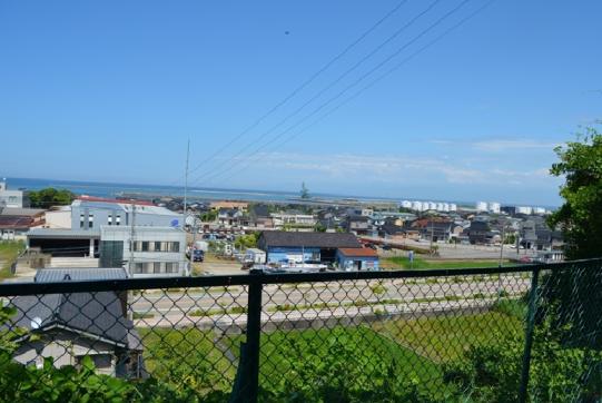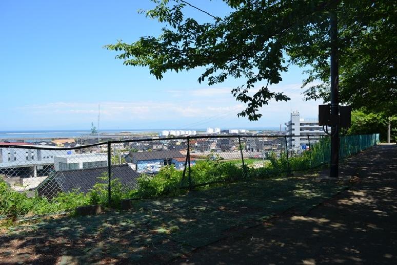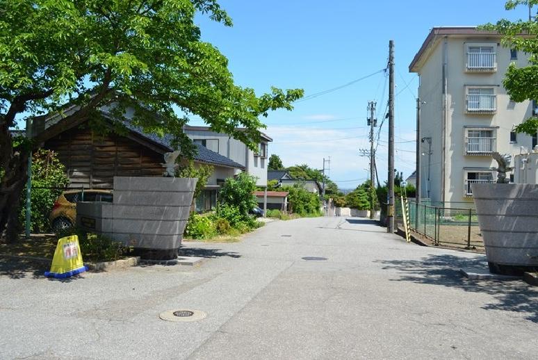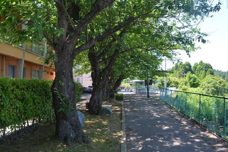海が見える高校「伏木高校」の校庭周辺。学校への一本道が趣がある。