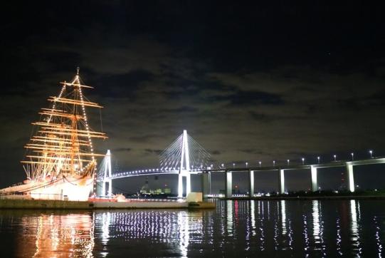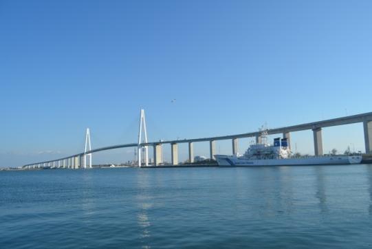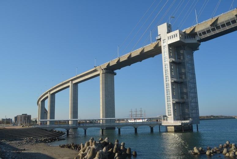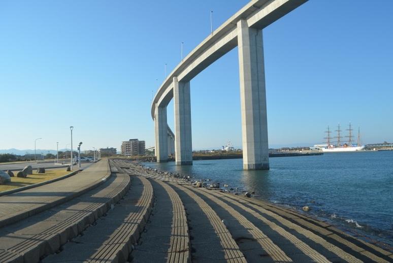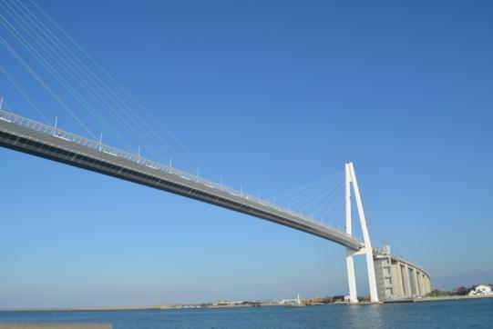 射水市の富山新港に架かる日本海側最大の斜張橋。上層は車道、下層は自転車歩行者通路の2層構造になっている。晴れた日には、橋から日本海や立山連峰、能登半島が一望できる。美しい夜景もおすすめ!