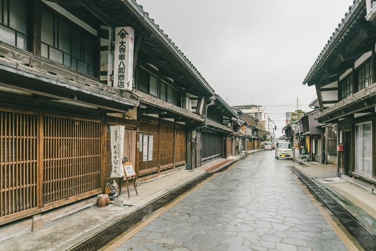 高岡鋳物発祥の地である金屋町は、高岡でも最も古い町である。およそ500mにわたって続く石畳の道と格子造りの古い家並みが見事に調和し、昔懐かしい風情ある町並みは映画やテレビに度々登場している。町ぐるみで撮影に協力的。