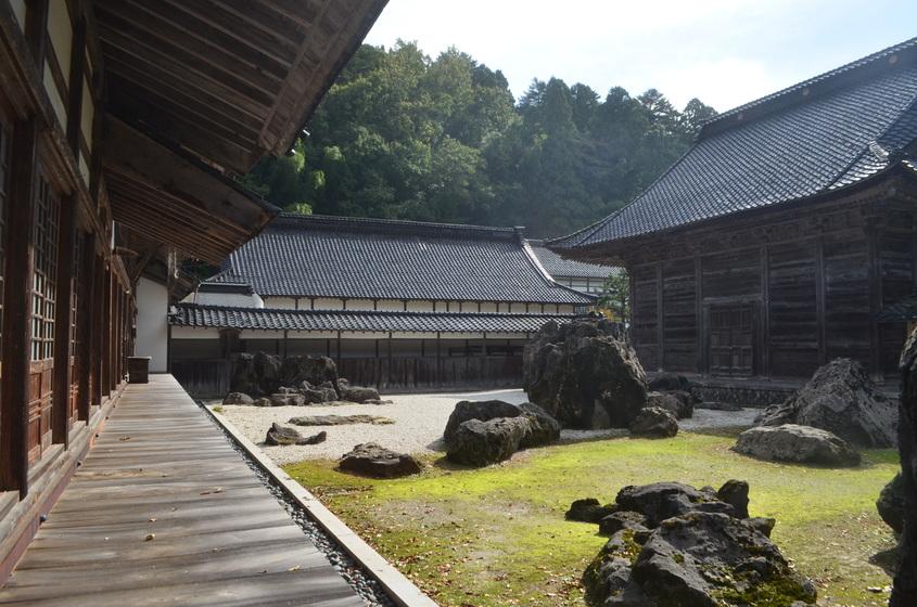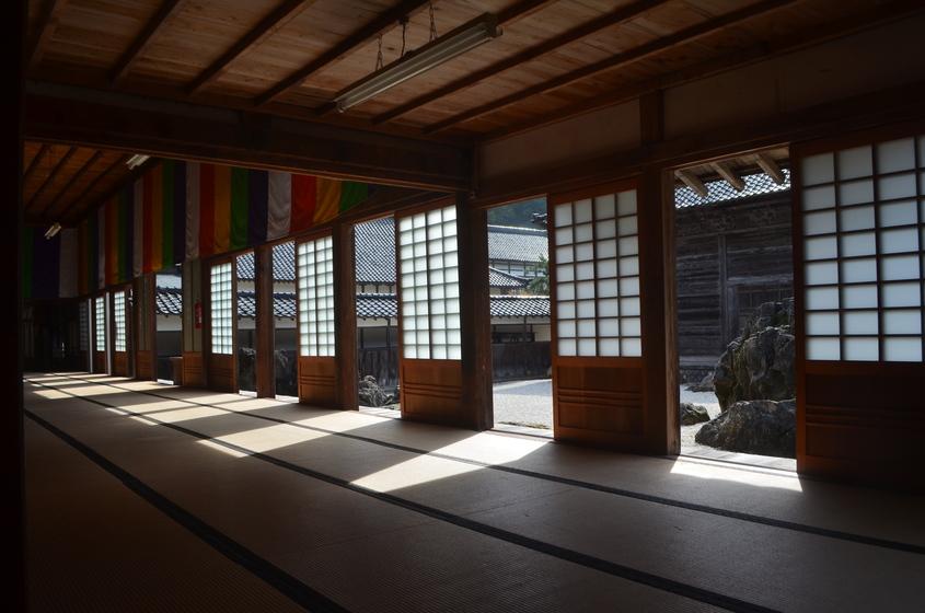 国泰寺は北陸路には数少ない臨済禅の道場で、臨済宗国泰寺派の大本山。広々とした境内には、観音堂、禅堂、開山堂などといくつか建物がそれぞれ別にあり、建物ごとに周辺の雰囲気ががらりと変わる。映画「散り椿」(2018)では、扇野藩を追われた瓜生新兵衛(岡田准一)が妻篠(麻生久美子)の最期を看取るシーンや、城中の大広間での評定(会議)シーンなどが撮影された。