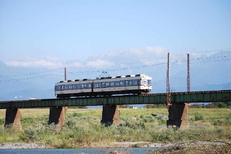 常願寺川橋梁とだいこん電車
