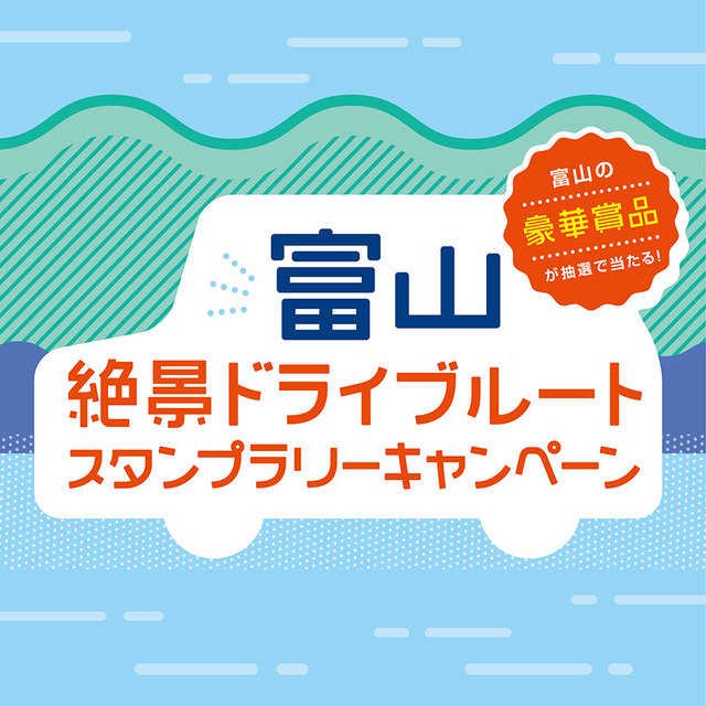 公益社団法人とやま観光推進機構では、近隣県及び首都圏からのリピーター顧客等を誘客するため、今般、富山県・県内13市町とタイアップし、絶景を堪能でき、走っていて気持ちの良い5つのドライブコースを開発しました。また、各ドライブコースを中心にスタンプスポットを巡るデジタルスタンプラリーキャンペーンを以下のとおり実施しますのでお知らせします。