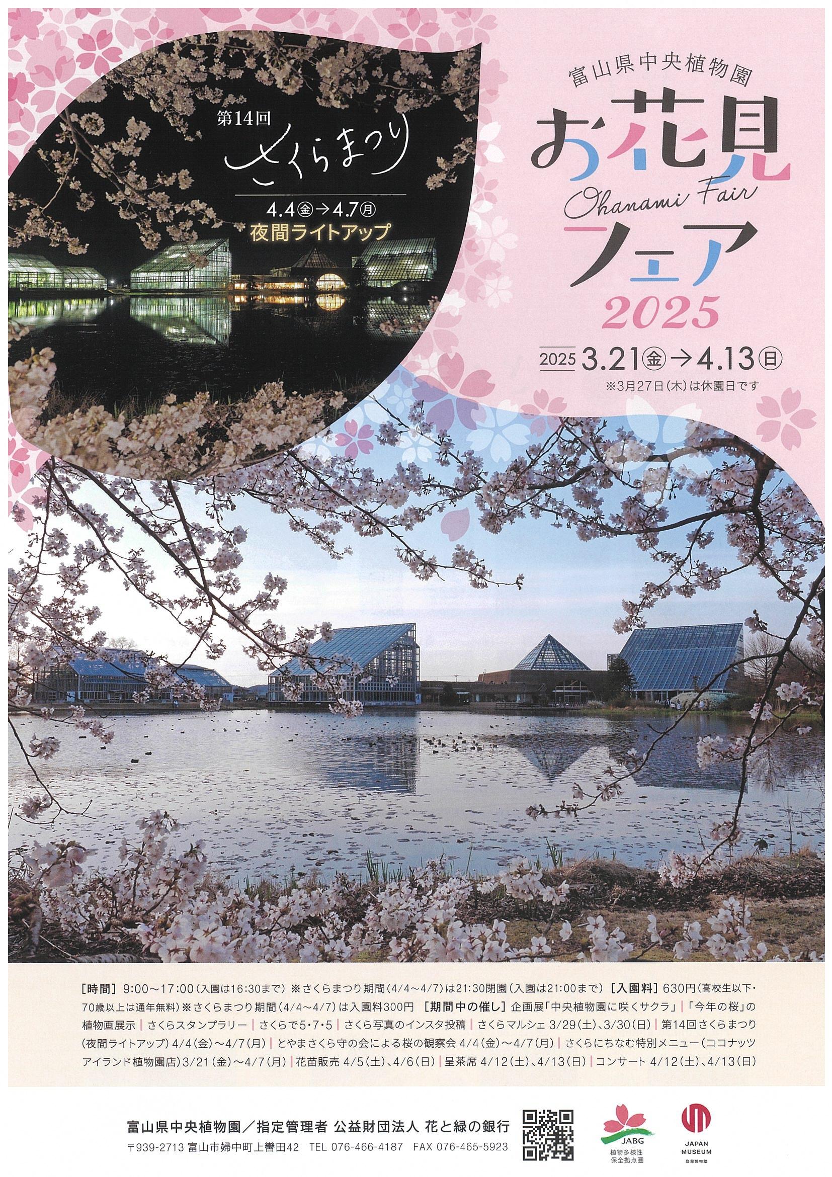 富山県中央植物園は140種類、520本のサクラと菜の花のコラボが園内の春を彩りますが、今年は毎年開催の夜間開園・ライトアップに加えて、さくらマルシェをはじめ様々な企画を週替わりでご用意しています。