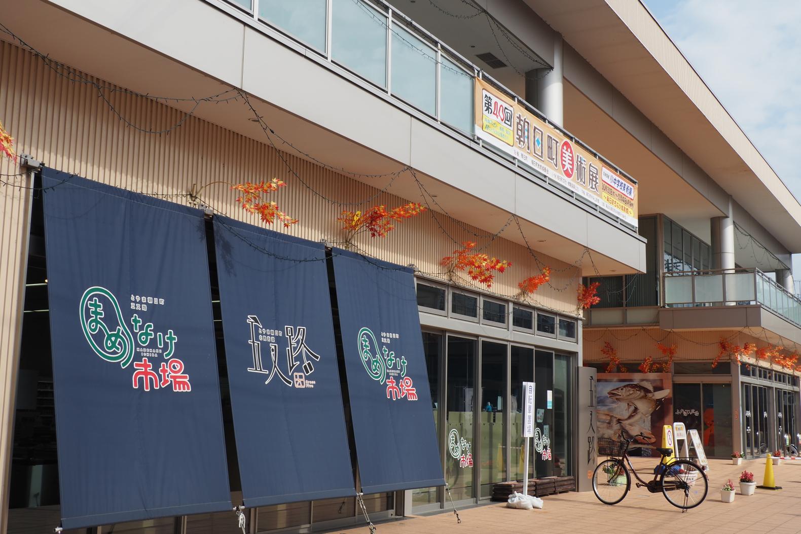 歩いて行けるまちなかのお店「まめなけ市場」。寺田鮮魚店、黒部名水ポーク、地元野菜、お豆腐、お惣菜、パン、お菓子、牛乳、日用品など、朝日町のいいものがギュッと勢揃い!毎月第3火曜日10:30~12:00には、まめなけマルシェを開催しています。
