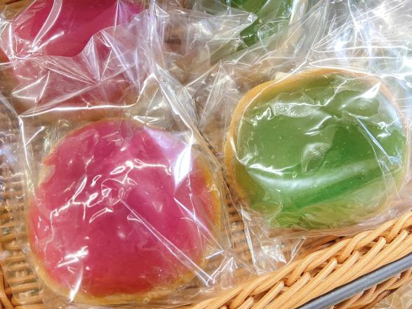 緑色は、クチナシやベニコウジなどの植物を使って色付けされており、安心安全の無添加素材で作られている身体にやさしいこだわりのパンです。
