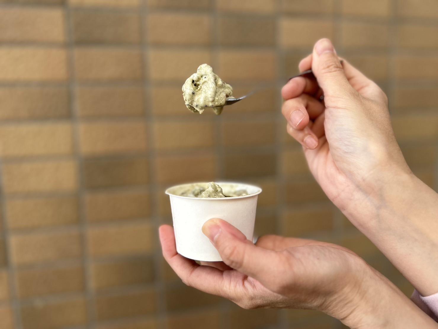 **新商品「えごまジェラート」**えごまクランチと葉っぱパウダーを使用した爽やかなジェラートが販売されました!ほんのりとした甘さで、ほうじ茶にも似ているような上品な味わいです。