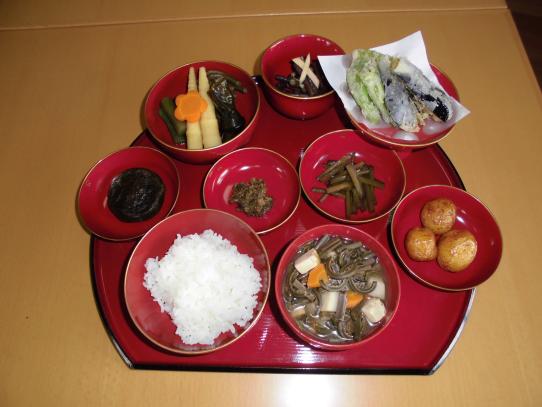 地元の方々が一つ一つ手摘みした山菜で、かつて宿坊で出していた御前を再現!人気の「くたべ」手作りマスクも販売しています。※くたべ:江戸時代富山に現れた流行り病の予言を行う病除けの霊獣。