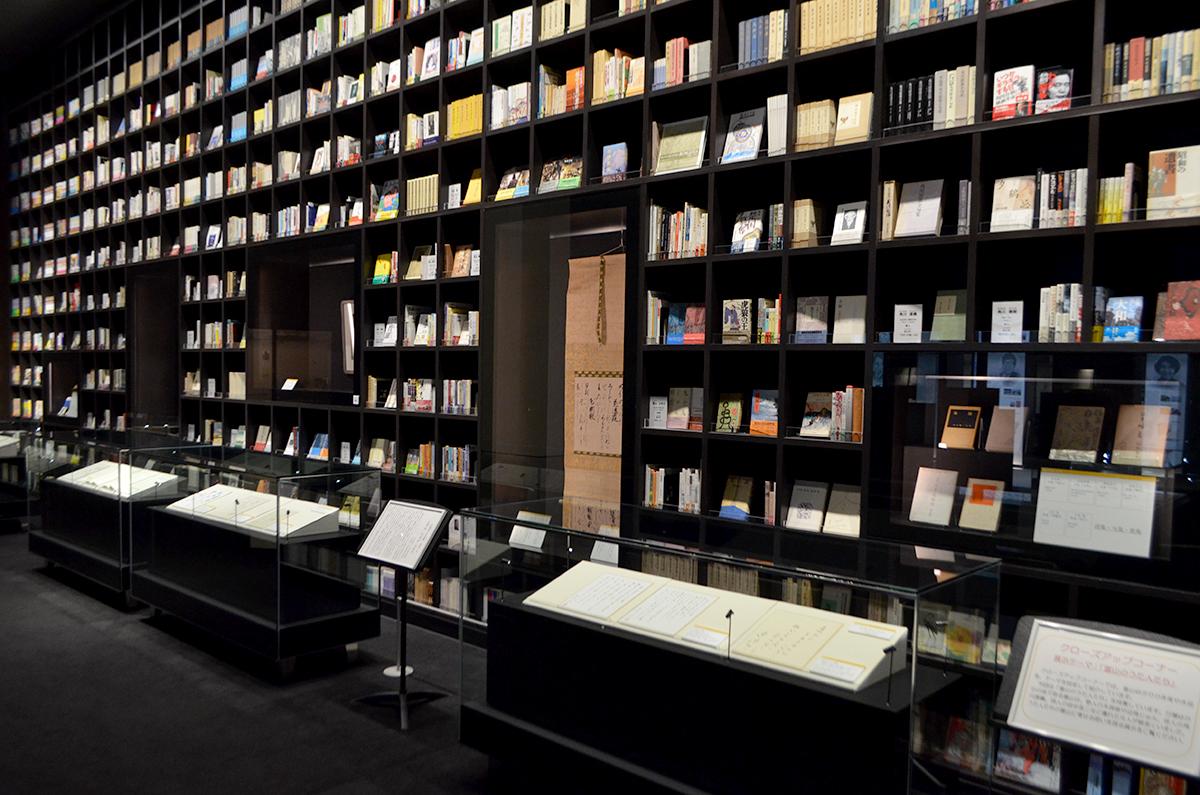 最初の目的地は、松川沿い、ミニマルなデザインの建物と美しい庭園が目を引く「高志の国文学館」です。古くは万葉歌人・大伴家持から、現代では堀田善衞や源氏鶏太、角川源義、また漫画では藤子不二雄Ⓐや藤子・F・不二雄、映画では滝田洋二郎や本木克英、細田守など、富山県ゆかりの作家や作品をジャンルレスに発信しています。