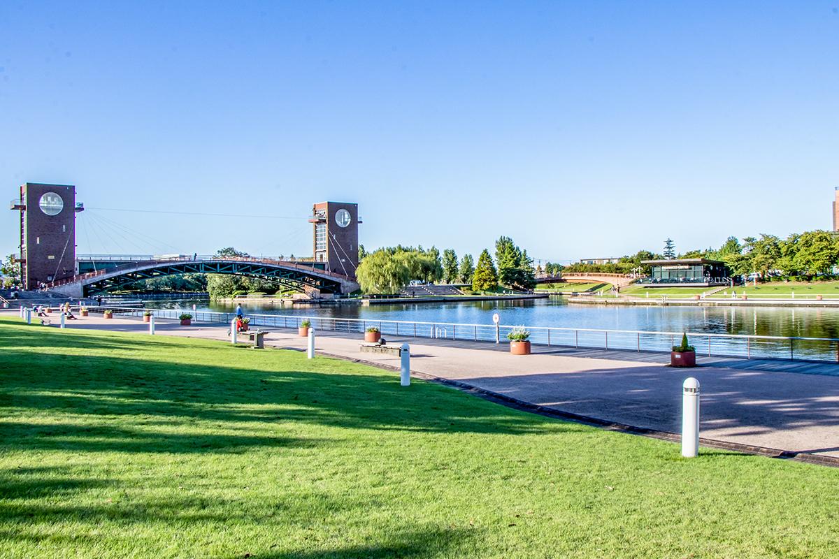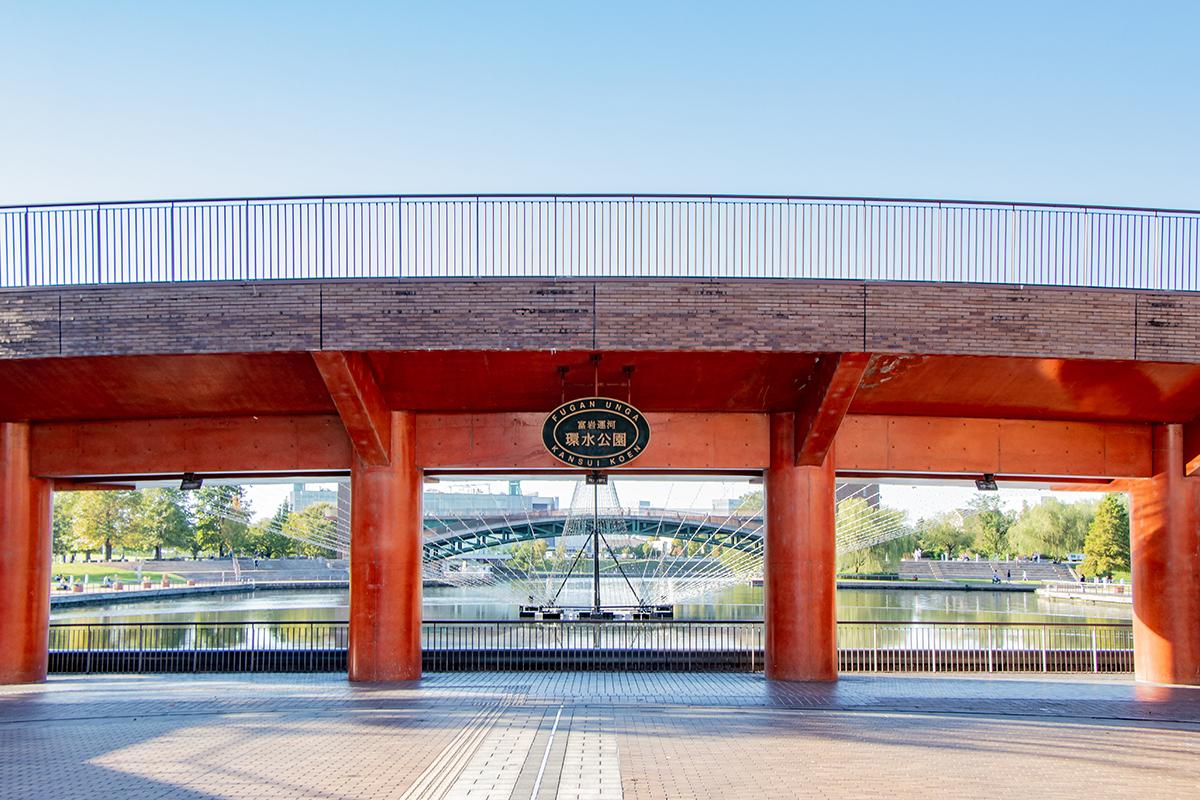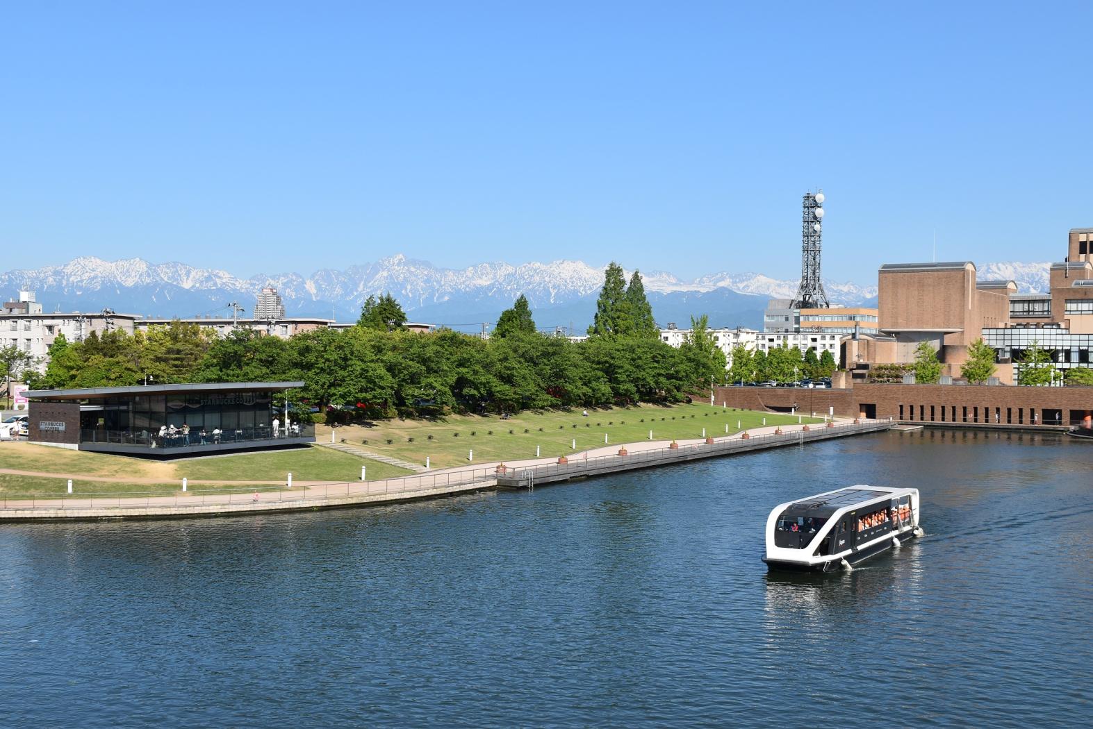 美術館を出たら、富岩運河を囲むように広がる公園でリフレッシュ。運河にかかる天門橋両端の展望塔に上れば、水と緑が美しい公園全体を見渡せます。世界一美しいとウワサの水辺のカフェや、遊覧船「富岩水上ライン」のクルージング、夜のイルミネーションも人気です。