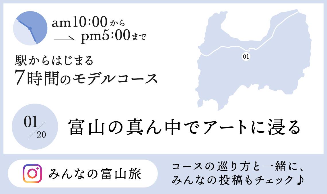富山駅を起点に、歩いて、路面電車に乗って、市中心部のアートスポットをめぐります。市中心部には「富山市ガラス美術館」「富山県美術館」をはじめ、展示はもちろんロケーションや建物自体が魅力的な美術館が点在しています。まちを走る路面電車もフォトジェニック。外から眺めても、中から車窓を覗いても、絵になる瞬間があります。アートでハートを満たしたら、富山らしいグルメでおなかも満足させて。