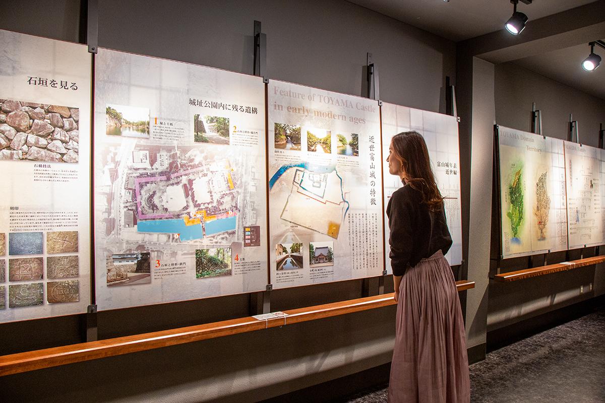 公園の一角に建つ天守閣は1954年に再建されたもので、内部は富山城の歴史を紹介する郷土博物館になっています。最上階の天守展望台に上がって、かつてのまちなみを想像しながら市街地を眺めてみましょう。