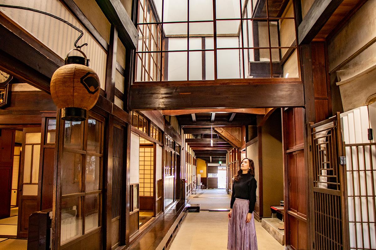森家のお隣の「旧馬場家住宅」も、江戸後期から活躍した北前船主・廻船問屋の家で、2021年に一般公開が始まりました 。当時は「岩瀬五大家」の筆頭に挙げられ、その住宅は東岩瀬町の中でも最大規模。長さ30mのトオリニワ(屋内通路)や、33畳ものオイ(広間)など見どころも豊富です。周辺には、オリジナルのクラフトビールを醸造している「KOBO Brewery」や100種類の満寿泉を満喫できるスタンディングバー「沙石」でお酒を楽しむこともできます。