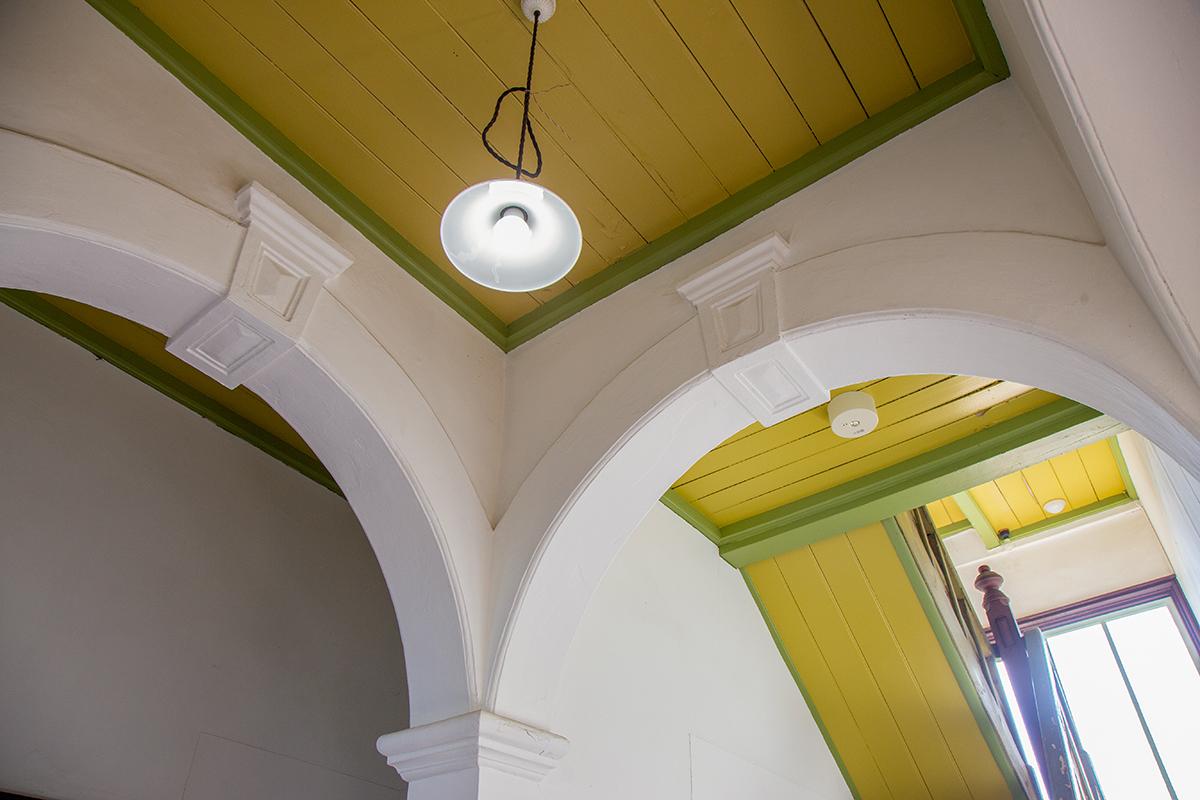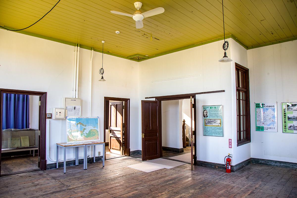 高岡駅で氷見線に乗り込み、まずは伏木駅で下車します。伏木は古くから港とともに発展してきたまちです。高岡市伏木気象資料館(旧伏木測候所)は、明治期に日本初の私立測候所として、伏木燈明台の一室に設立されました。その後二度の移転を経て、明治期から残る気象観測施設として高い評価を受け、登録有形文化財に登録されています。レトロな洋風木造建築の外観がとても魅力的です。