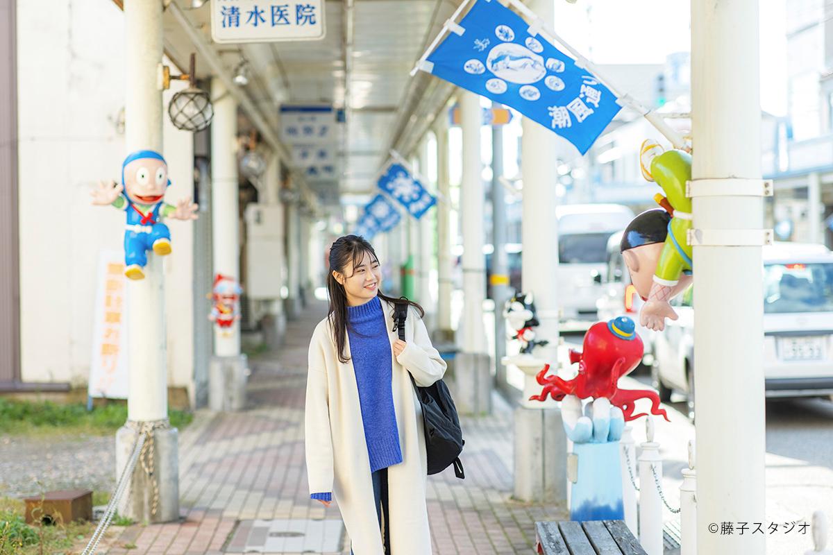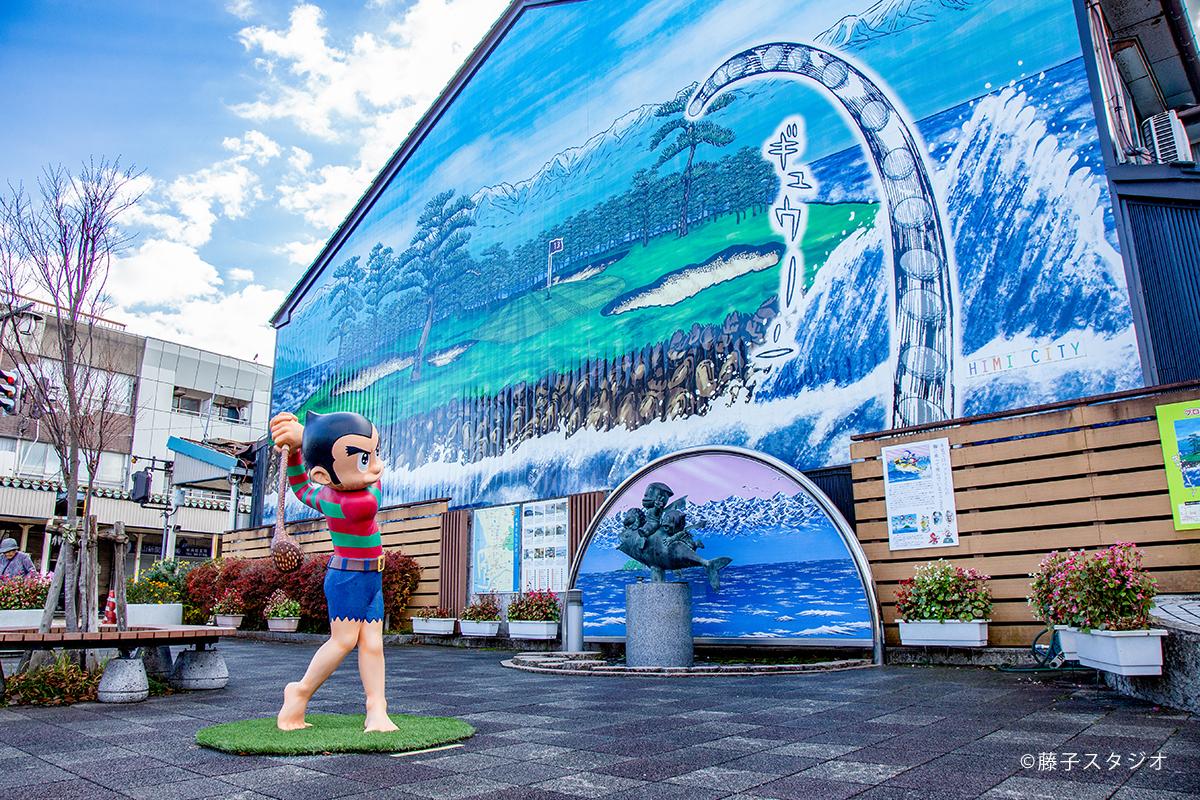 JR氷見駅からはじまる「まんがロード」では、市出身のまんが家、藤子不二雄Ⓐ先生の大人気キャラクターたちが出迎えてくれます。「忍者ハットリくんカラクリ時計」に「喪黒福造のスマイルベンチ」、「プロゴルファー猿ポケットパーク」 など魅力的なスポットがたくさん。昨年12月にリニューアルした「忍者ハットリくん巨大壁画」も見逃せません!