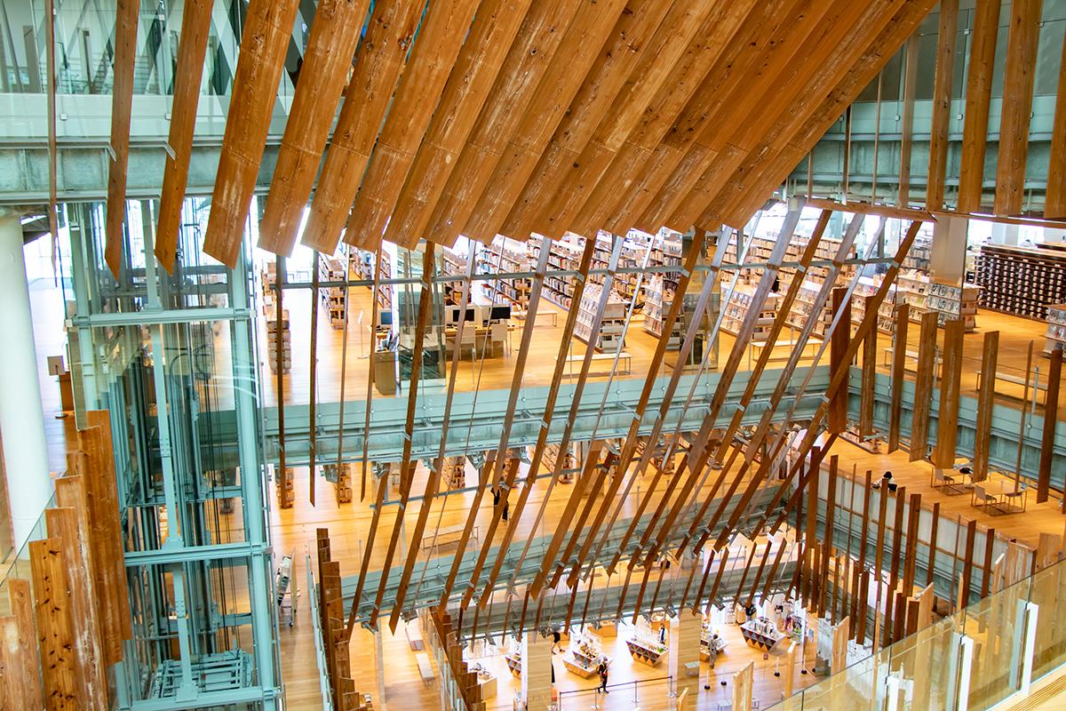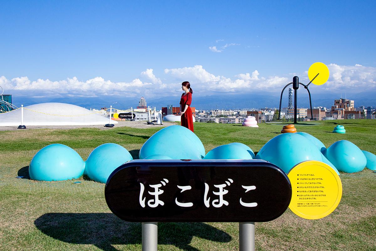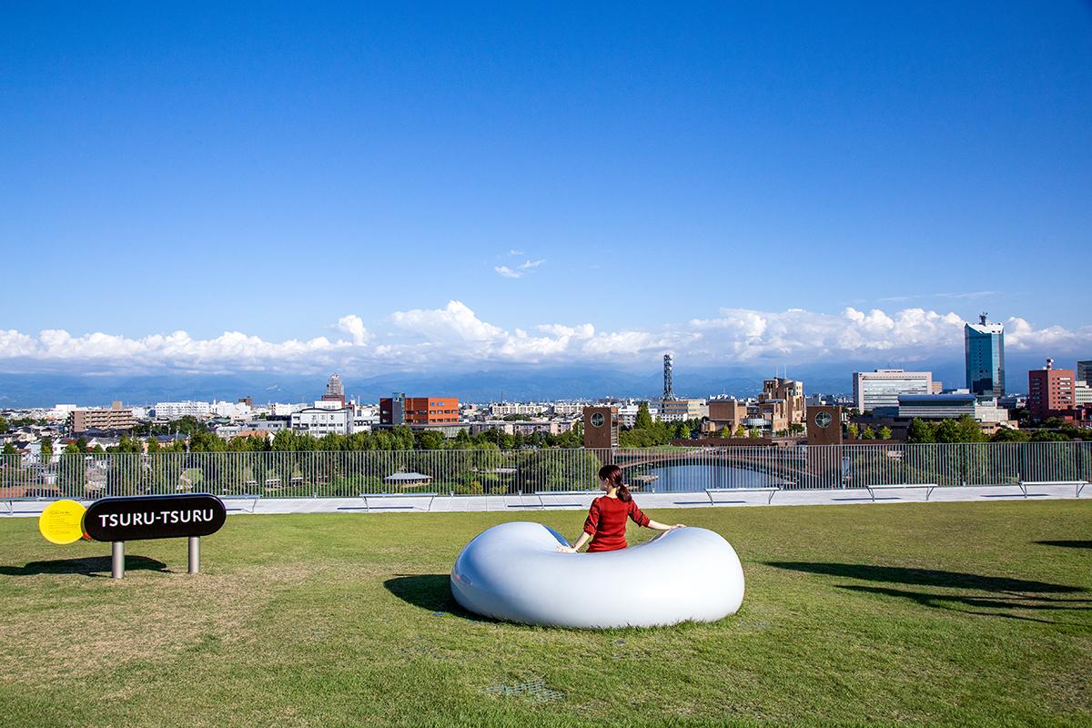 富山の美しい風景を取り込んだ建築設計は内藤廣氏。「オノマトペの屋上」と名づけられた屋上庭園にもぜひ足を運んでみて。オノマトペから考えられた遊具の数々が、大人の遊びごころをくすぐります。