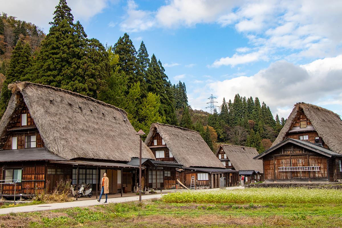 相倉集落には、20棟の合掌造りの家屋が並びます。山間の気候風土に合わせて発達した合掌造りの家屋と素朴な田園が織りなす光景は、おとぎ話のように美しく、心にしみます。