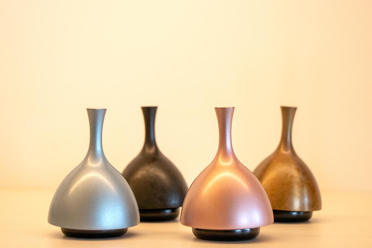400余年にわたり育まれてきた高岡銅器。再び庄川沿いの道を走り、ものづくりのまち高岡を代表する鋳物メーカー・能作の本社工場を訪ねます。広大な敷地に建つ本社工場は、おしゃれで開放的な雰囲気。エントランスを入ると、実際に製造に使われている「木型」が壁一面に並ぶ様子に圧倒されます。