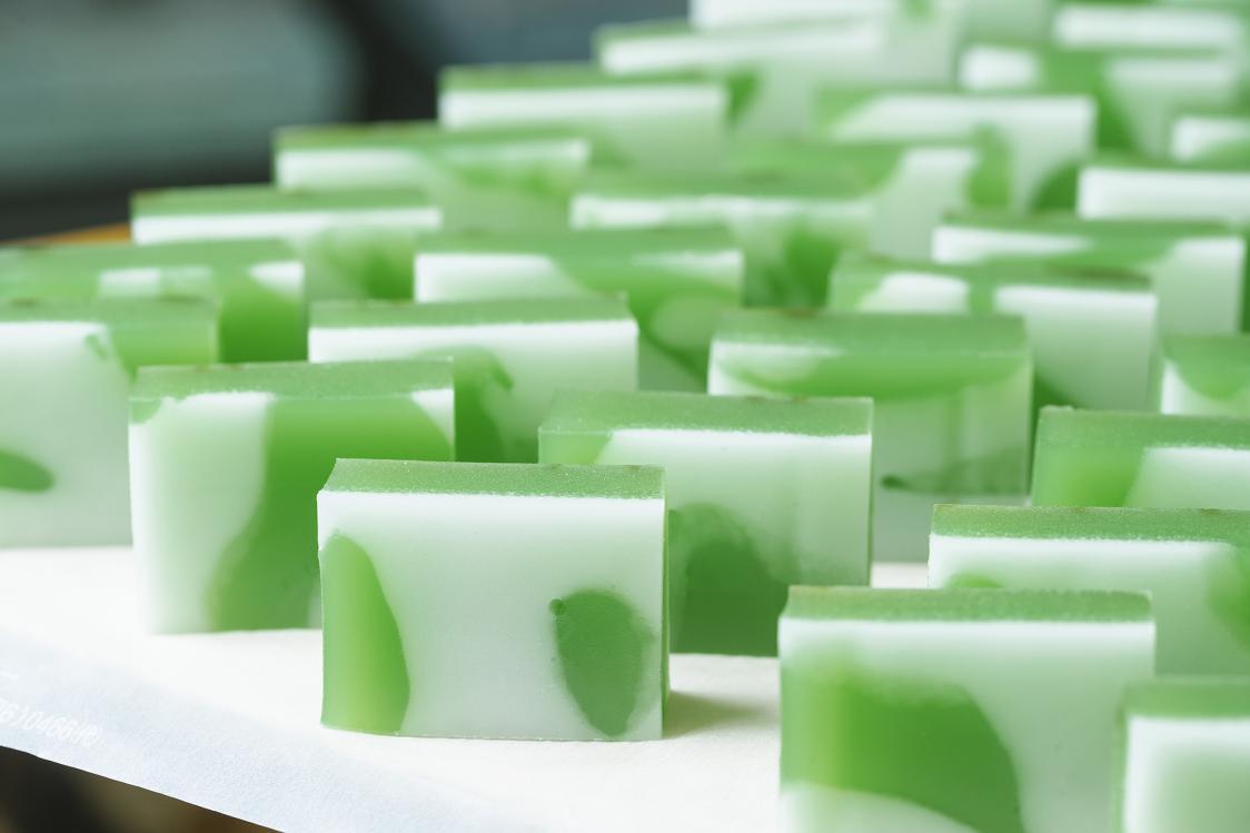 透き通った海に目を奪われる朝日町ですが、実はグルメにも美しいエメラルドグリーンが。「ヒスイ海岸」をイメージした「ヒスイパン」は、自家製あんぱんに羊羹をコーティング。鮮やかな翡翠色には天然色素が使用され、上品な甘さにうっとり。ろうかんのヒスイとの出会いの感動をお菓子にした「ヒスイ羊かん」も、柔らかく寒氷のシャリっとした口当たりがたまりません。