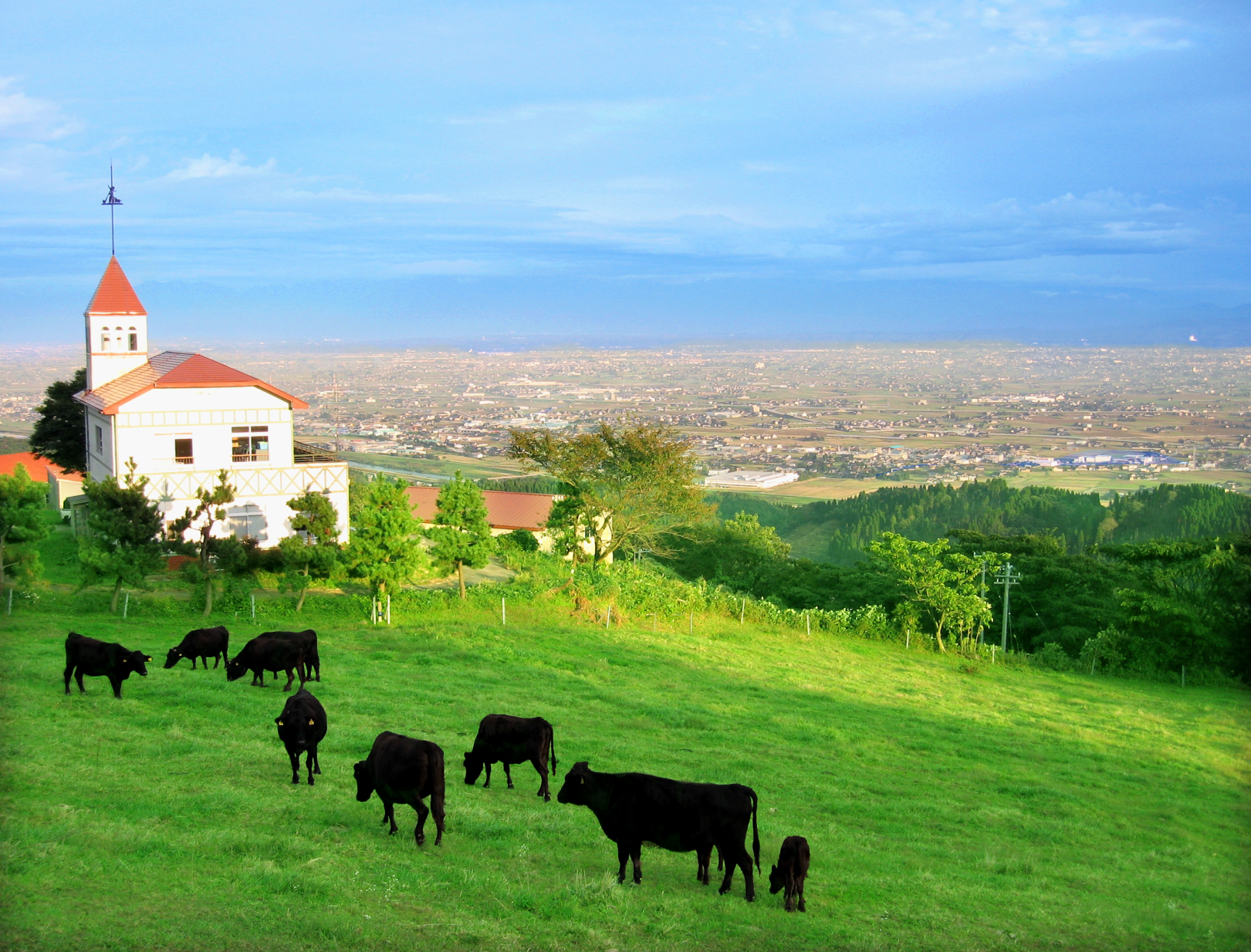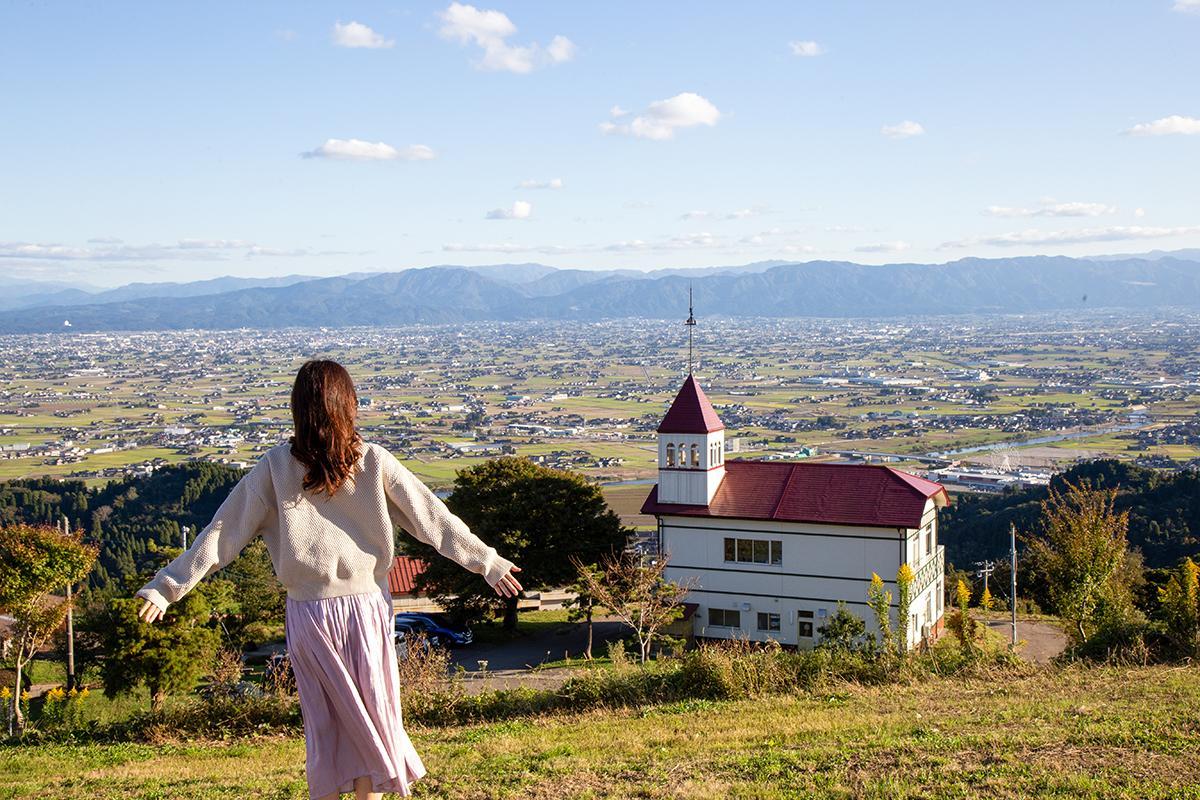 四季折々の風景、歴史ロマン溢れる名所も多い小矢部市。「クロスランドおやべ」にある高さ118mの「クロスランドタワー」からは、雄大な立山連峰と砺波平野の散居村、市内に点在す有名建築をモチーフとした「メルヘン建築」を望むことができます。