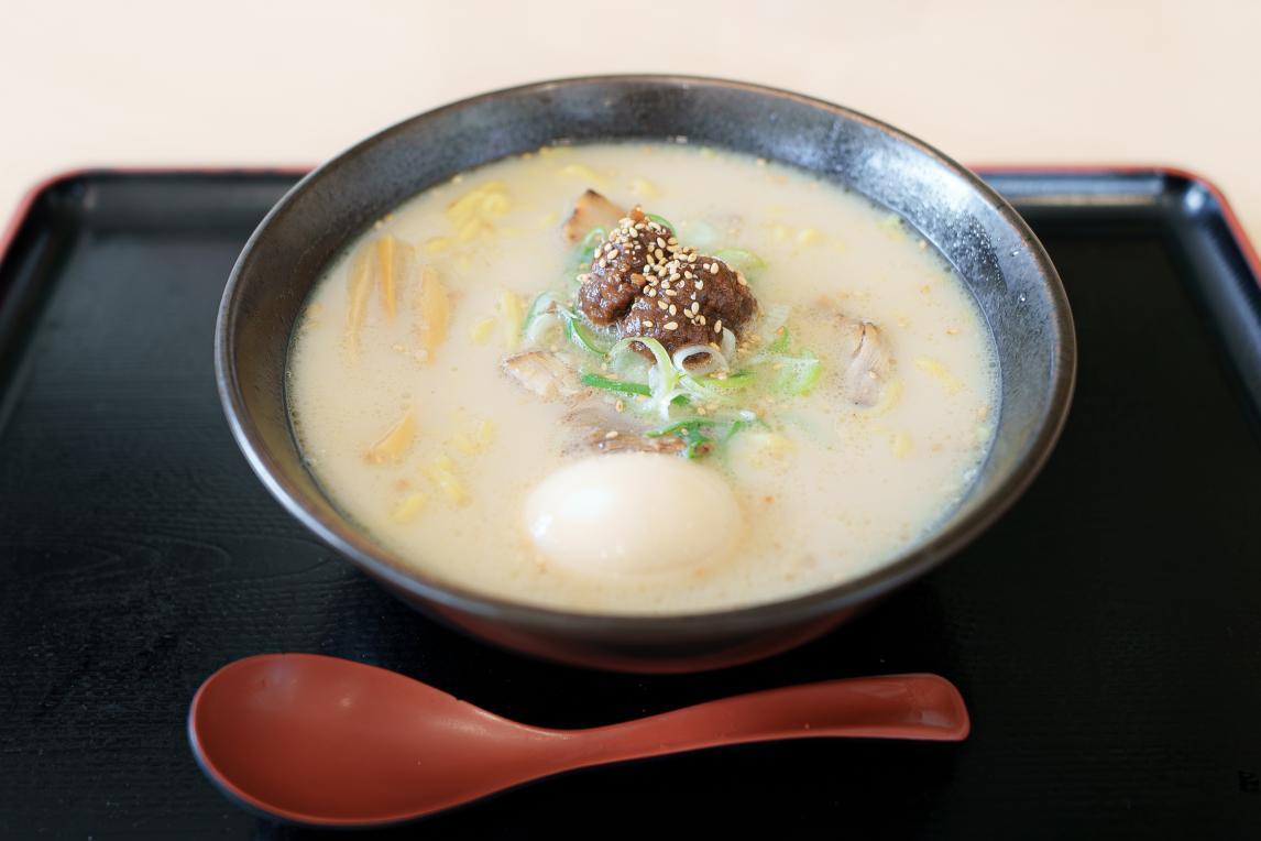 富山といえば「ブラックラーメン」のイメージがありますが、小矢部市にあるのは「ホワイトラーメン」。スープは白い豚骨であること、肉味噌が乗っていること、小矢部市の食材を使用していること、この3項目を定義としています。あっさりとしたスープに肉味噌が溶け合うことで生まれる絶妙な味わいが美味。「道の駅メルヘンおやべ」のフードコート「メルヘン田舎」で食べることができます。他にも「火牛定食」や「源平火牛煮込みうどん」など、小矢部ならではのご当地メニューも豊富。