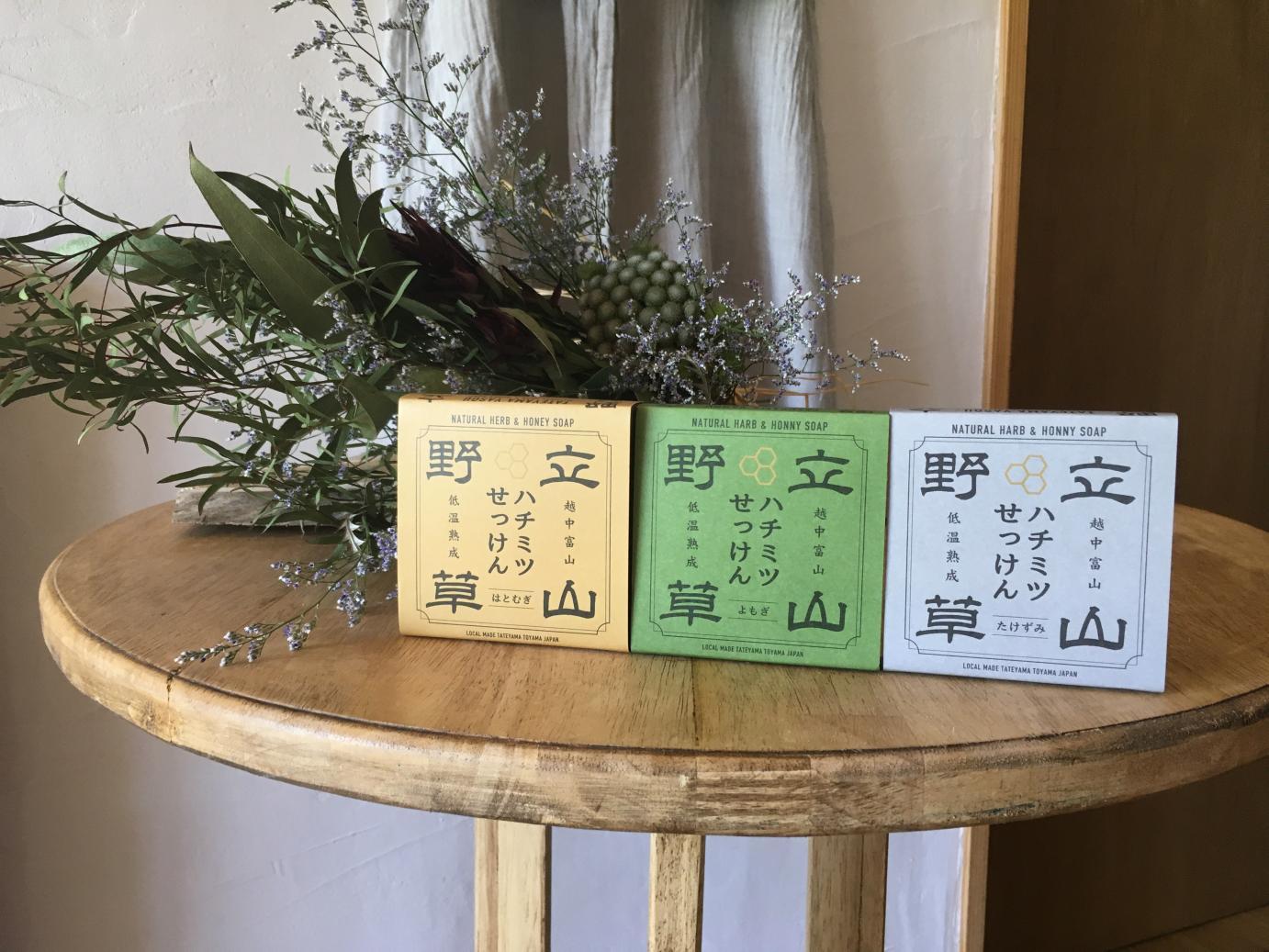 また自然の恵みが詰まったコスメ「立山野草ハチミツせっけん」に使われているのは、立山山麓で採れた蜂蜜と地元で採れる野草。爽やかな香りとともに、立山の大自然を感じらるお土産としてもおすすめです。