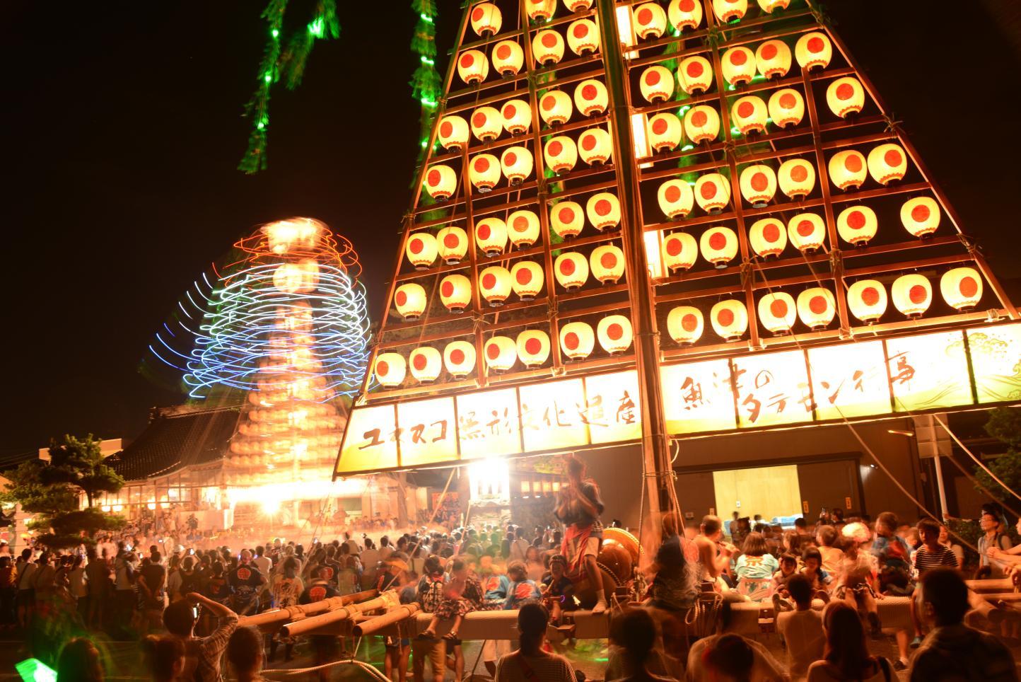 魚津市最大のイベントといえば、毎年8月に行われる「じゃんとこい魚津まつり」。高さ16メートルもある大迫力の7基の「たてもん」が、豪快に引き回される海の祭りです。