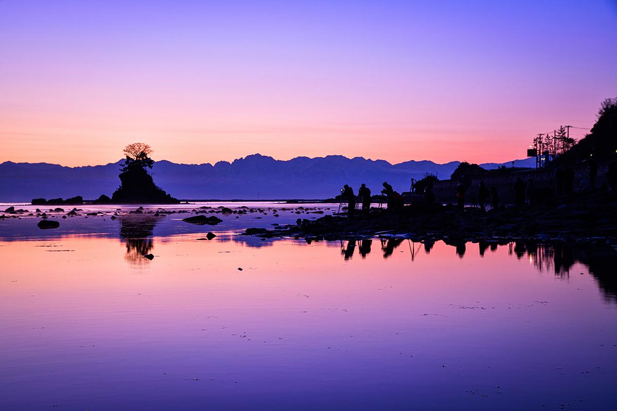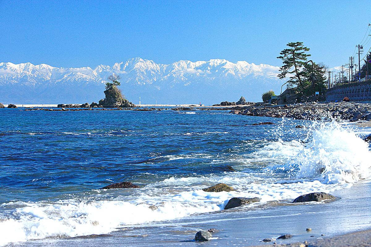 氷見沖の向こうに3000m級の立山連峰を望める、能登半島国定公園の氷見海岸一帯から雨晴海岸は、世界でも稀な景観といわれています。