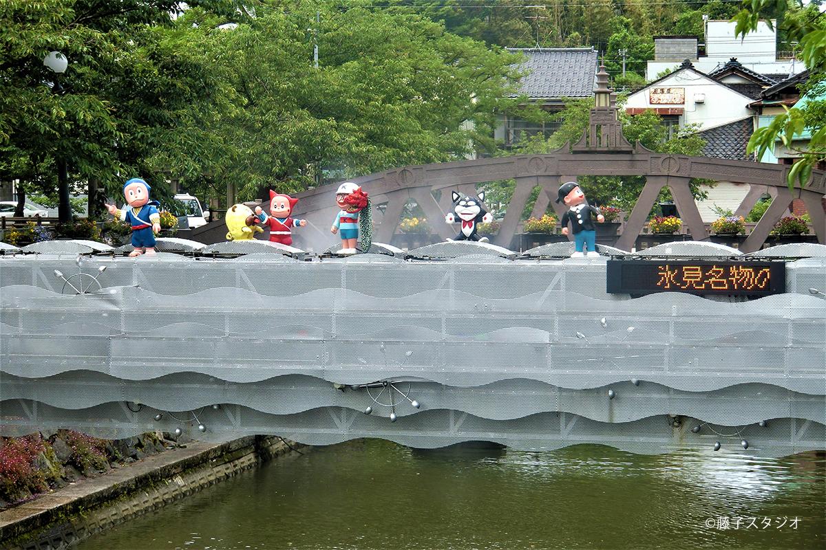 JR氷見駅からはじまる「まんがロード」では、市出身のまんが家、藤子不二雄Ⓐ先生の大人気キャラクターたちが出迎えてくれます。「忍者ハットリくんカラクリ時計」に「喪黒福造のスマイルベンチ」、「プロゴルファー猿ポケットパーク」 など魅力的なスポットがたくさん。昨年12月にリニューアルした「忍者ハットリくん巨大壁画」も見逃せません!