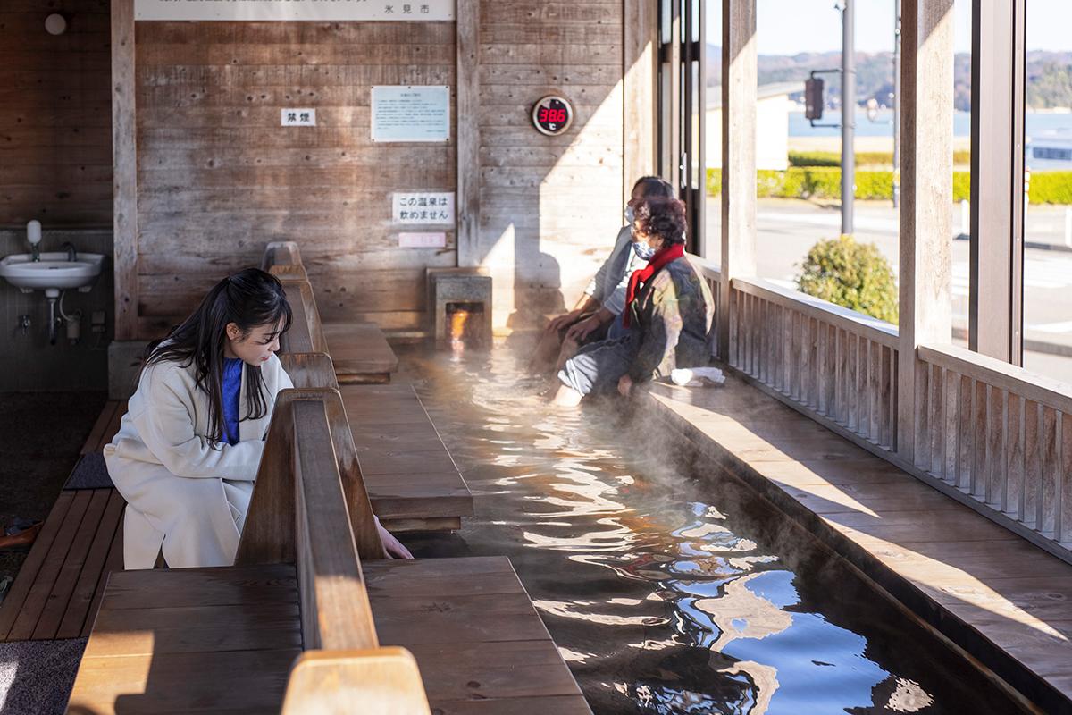 まんがロードから上庄川の河口付近に架かる比美乃江大橋を渡ると、ひみ番屋街はすぐそこ。富山湾で水揚げされる新鮮な海の幸やお土産の販売や、富山湾を一望できる展望台、足湯などもあります。