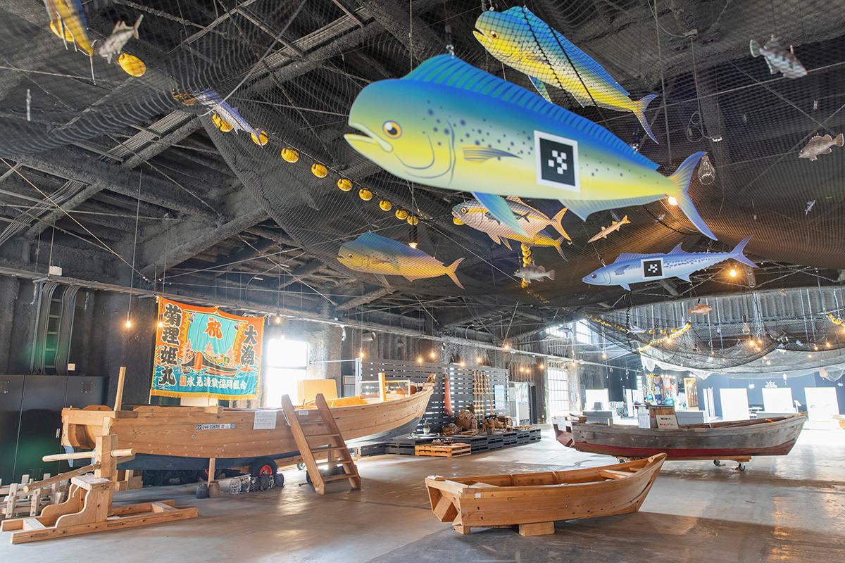 まんがロードのほど近く、氷見漁港に面して建つ氷見市漁業文化交流センターは、別名「ひみの海探検館」。「天然のいけす富山湾」「氷見の漁師体験」などの大迫力映像が楽しめるVR(仮想現実)シアター、スマホをかざすと情報が出てくるAR(拡張現実)ストリームなど、多彩な体験型展示を楽しめます。また、飲食スペースの「ひみ岸壁市場」では氷見漁港で水揚げされた新鮮な魚を定食などで楽しめ、お惣菜やお弁当、鮮魚の販売もしています。