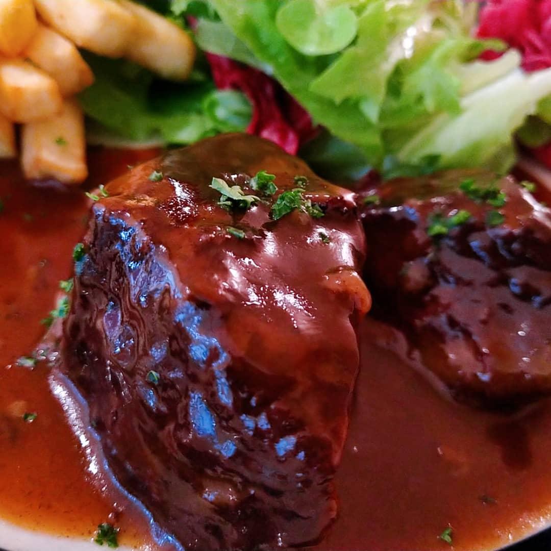 マルカッサン木のぬくもりを感じるこぢんまりとしたフレンチレストラン。シェフこだわりの地元食材を使った料理を落ち着いた空間で愉しめる。