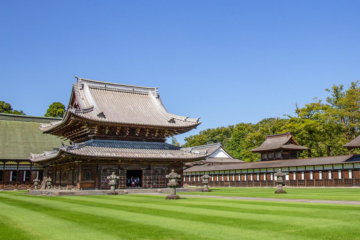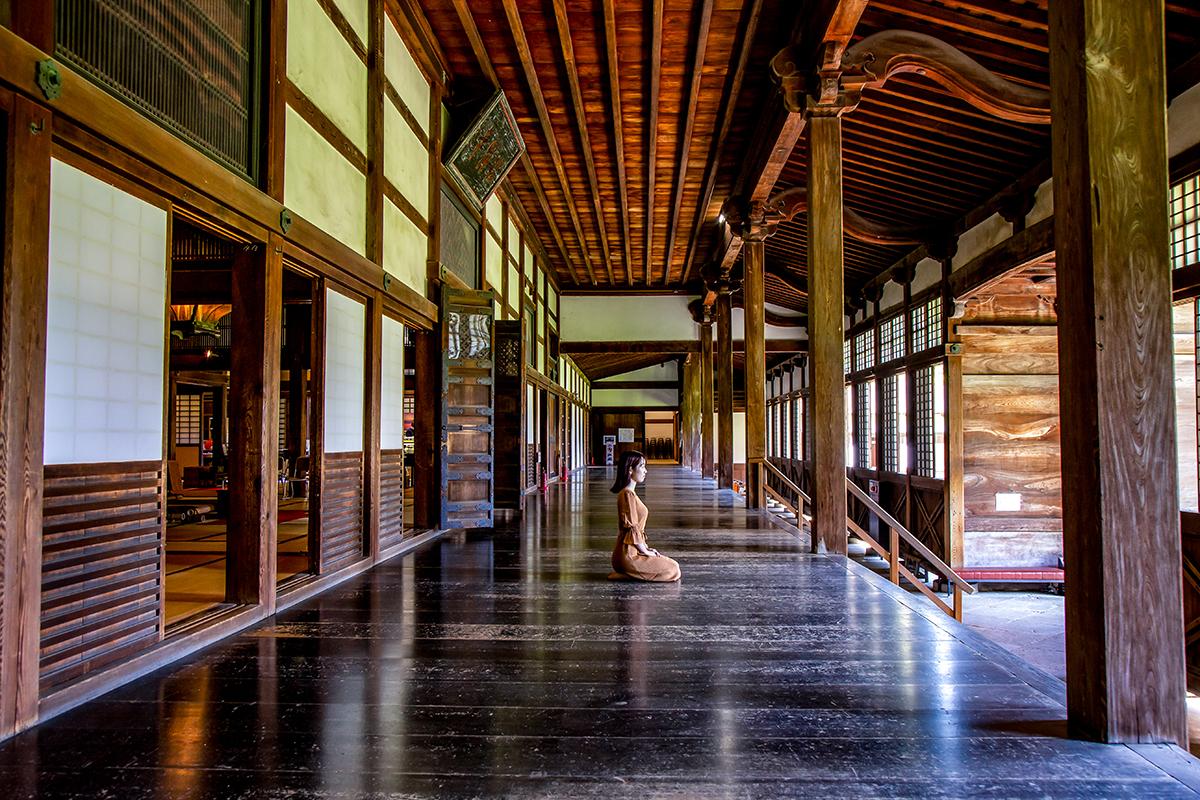 歴史散策と絶景の旅をしめくくるのは国宝・瑞龍寺です。高岡のまちをひらいた前田家二代・前田利長の菩提をとむらうため、三代利常が約20年の歳月をかけて造営しました。仏殿・法堂・山門が一直線に配列されている空間は別格の美しさです。