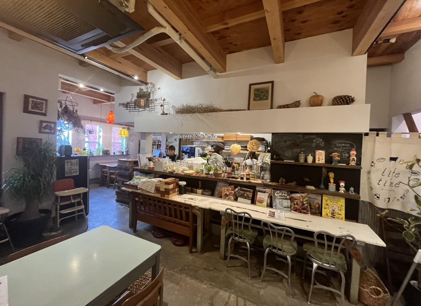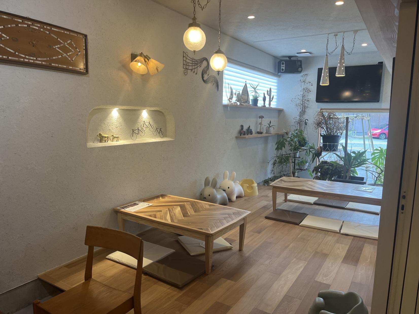 店内に入ると、アンティークな調度品や壁掛けなどが味わい深く、アメリカ南部の農家に来たかのような雰囲気を生み出しています。座席はテーブルと小上がりがあり、小上がりには子ども用の椅子も用意されているので、親子も安心して利用できます。