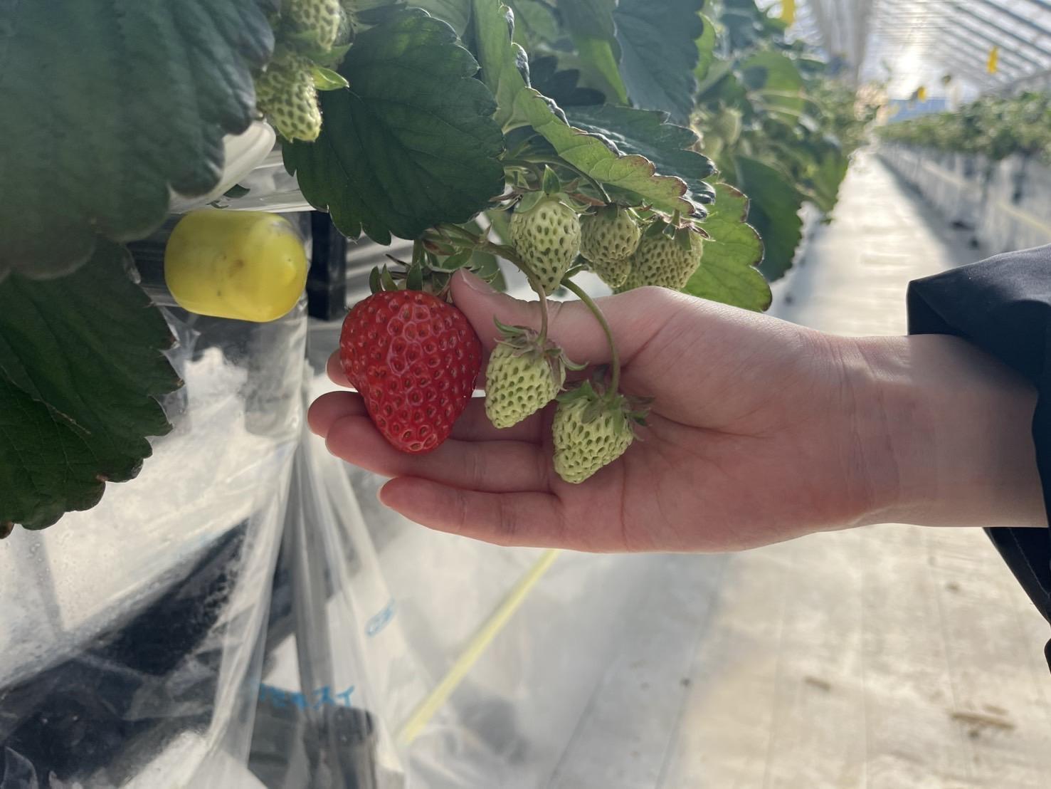 砺波市の農事組合法人「ガイアとなみ(中島一利代表理事)」では、2016年に栽培品目を花きからイチゴに転換、それから3年後にイチゴ摘みの観光農園を始めました。さらに2021年に「私と苺」というブランドを立ち上げ、ジャムなどの加工品販売やカフェの経営にも乗り出すなど、イチゴを柱にした多角的な経営に取り組んでいます。年間約6500人が来場するイチゴ摘みを体験しました。