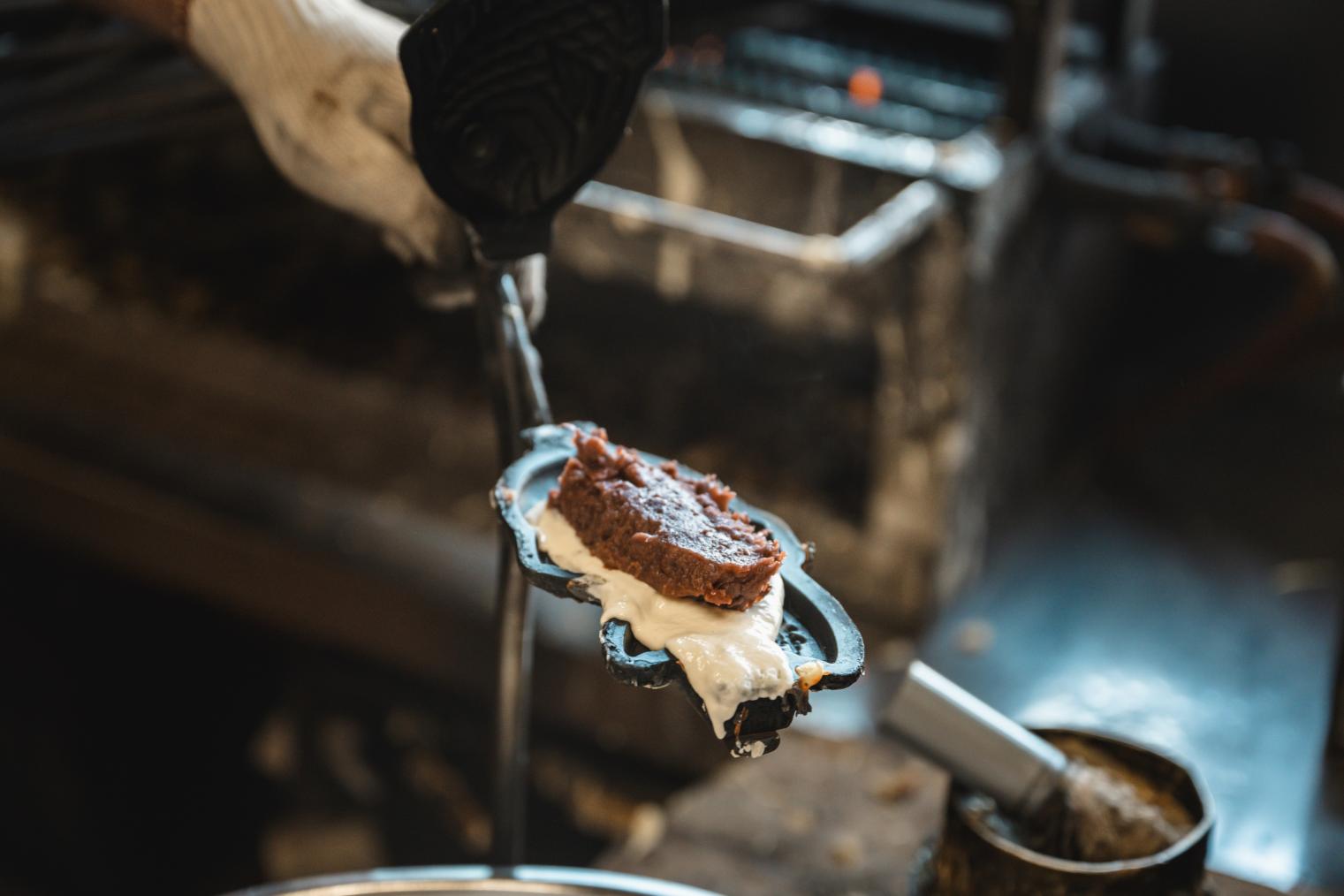 直火で丁寧に焼き上げられたたい焼きは、外はサクサク、中はフワフワで、あんこが尻尾までぎっしりと入っています。