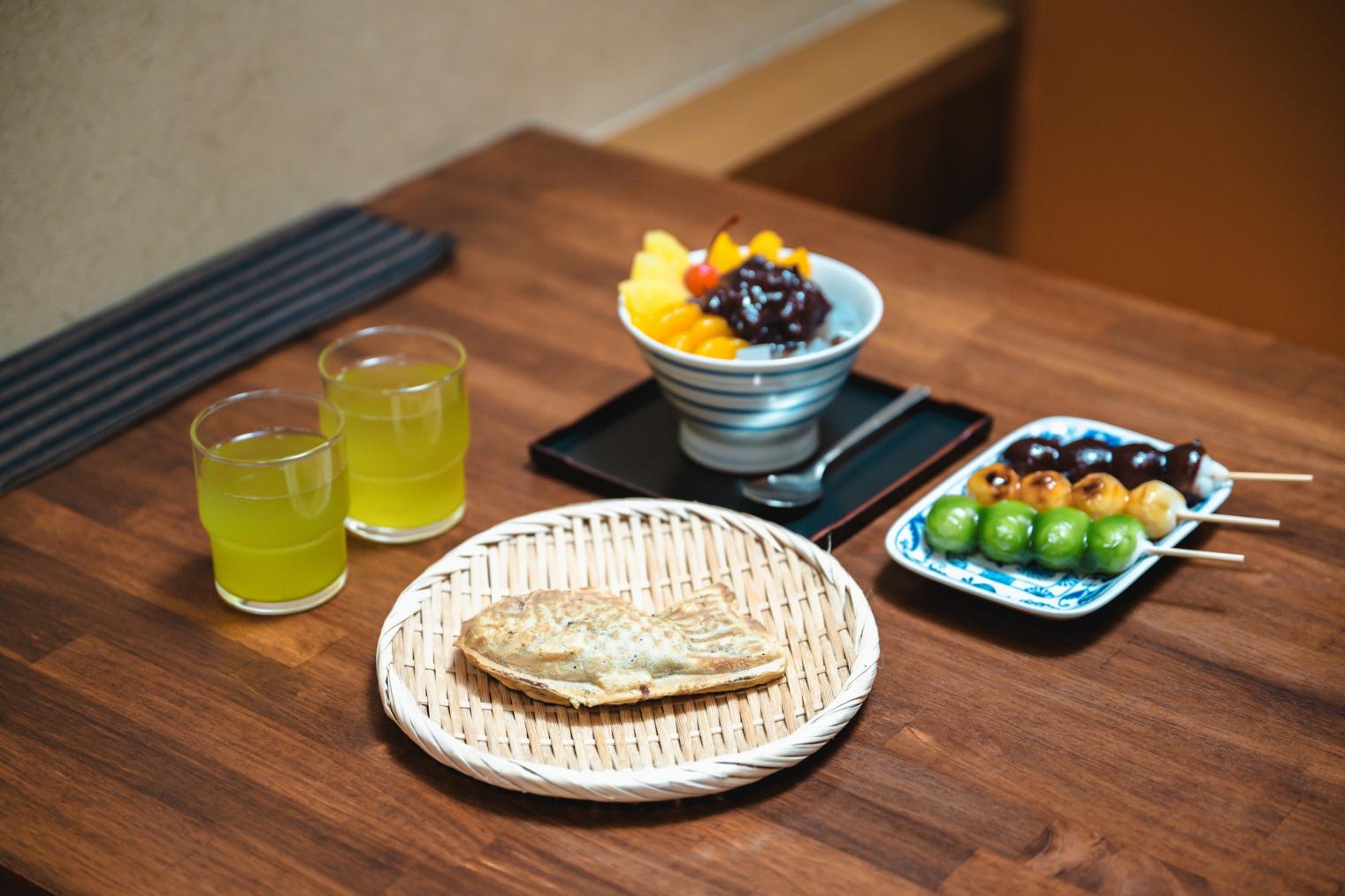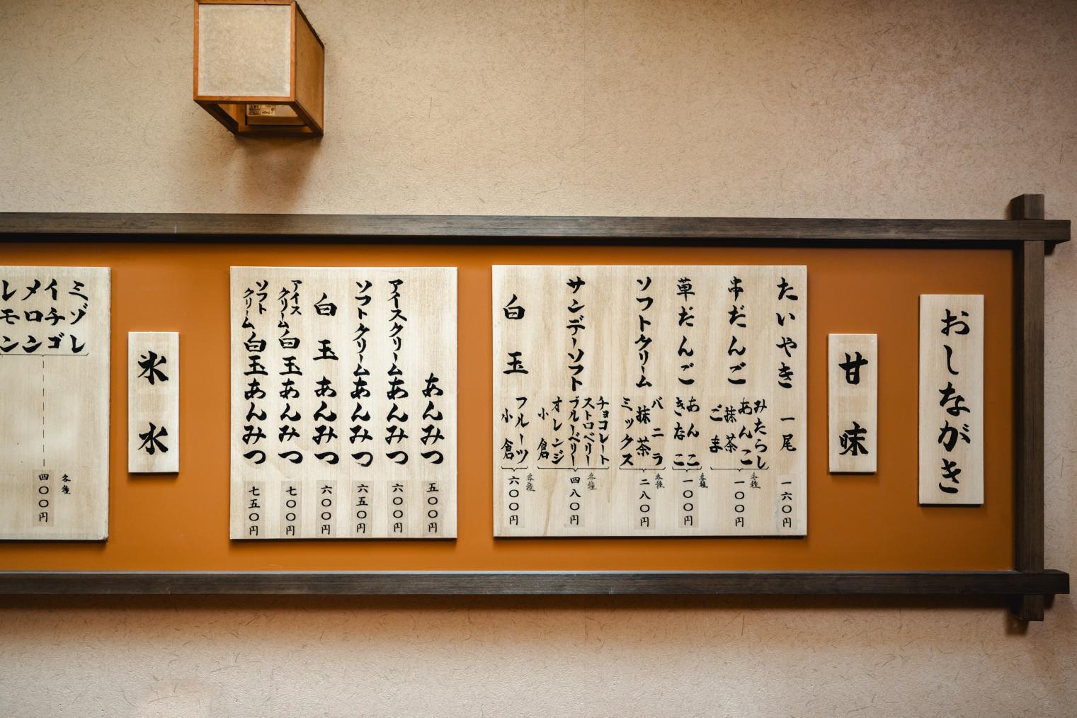 たい焼きの他にも、あんみつやお団子といった和菓子の定番商品を取り揃えています。