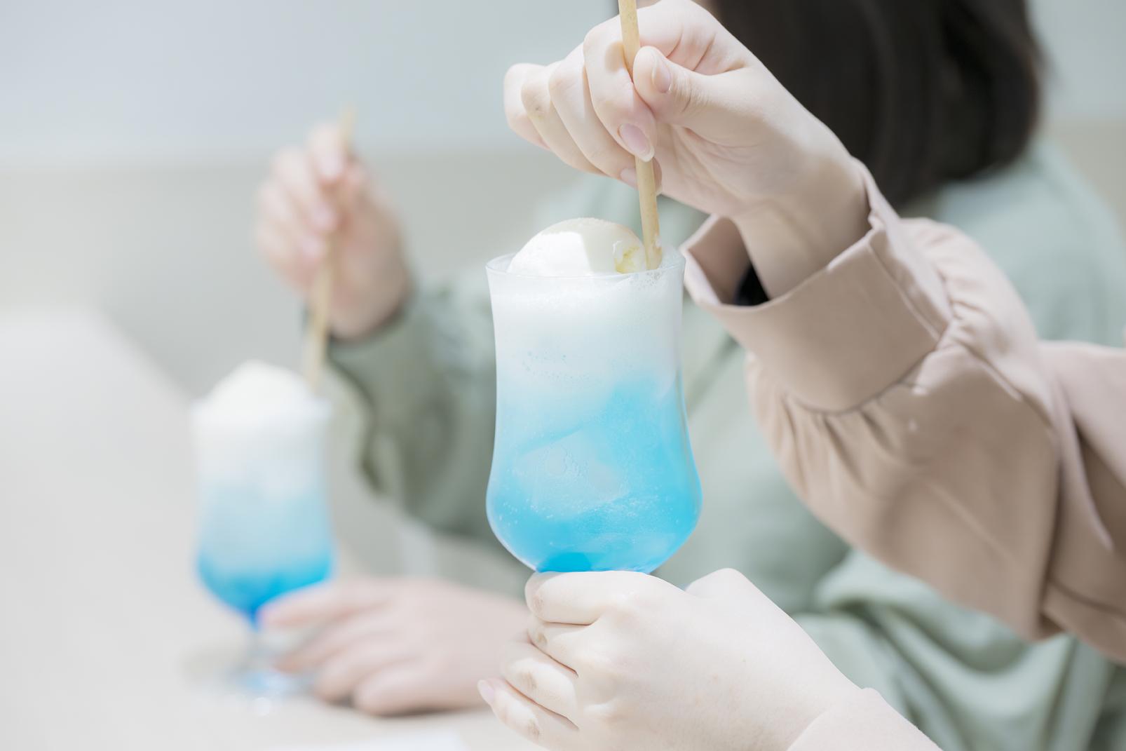 高岡駅前にある「SEKAI HOTEL」は、藤子・F・不二雄先生が通っていた本屋「文苑堂」をリノベーションして誕生したホテル&カフェ。「やわやわブルー」をキーカラーに、空間やメニュー作りをしています。