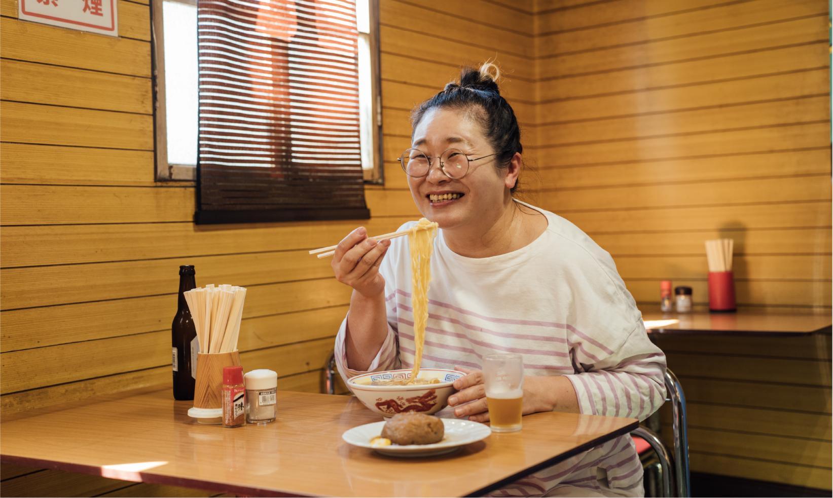 実家のすぐそばにある「春乃色食堂」は、大正12年から続く老舗。私にとって、小さい頃からずっと通い続けている文字通り“馴染みのお店”です。初めて来たのは小学1年生の時。夏休みの最終日に、頑張ってラジオ体操に通ったご褒美として家族に連れてきてもらいました。また、地元の春祭りの前にはみんなでここに集まって、うどんやラーメンを食べてから出発するというのが恒例だったんです。楽しい思い出がたくさん詰まっていて、その頃と味もお店の雰囲気もまったく変わらない。来るたびにホッとした気分にさせてくれる、私にとってなくてはならない場所です。