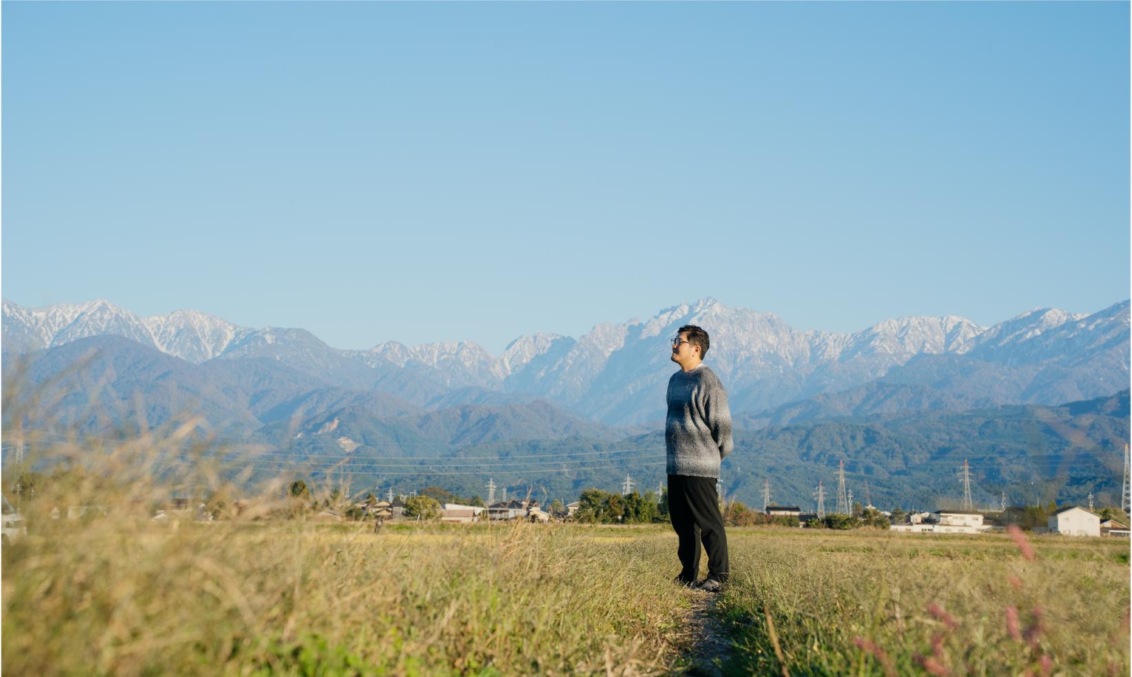 一旦離れて、改めて地元の魅力を見つめ直してみると、小さい頃から慣れ親しんでいた田んぼのなかを富山地方鉄道の電車が走る風景がいまも残り、都会にはないのどかな時間がとても新鮮に感じられます。さえぎる建物がない分、どこからでも立山の剱岳(つるぎだけ)がはっきりときれいに見えて、ついつい車を停めて写真を撮ってしまいます。