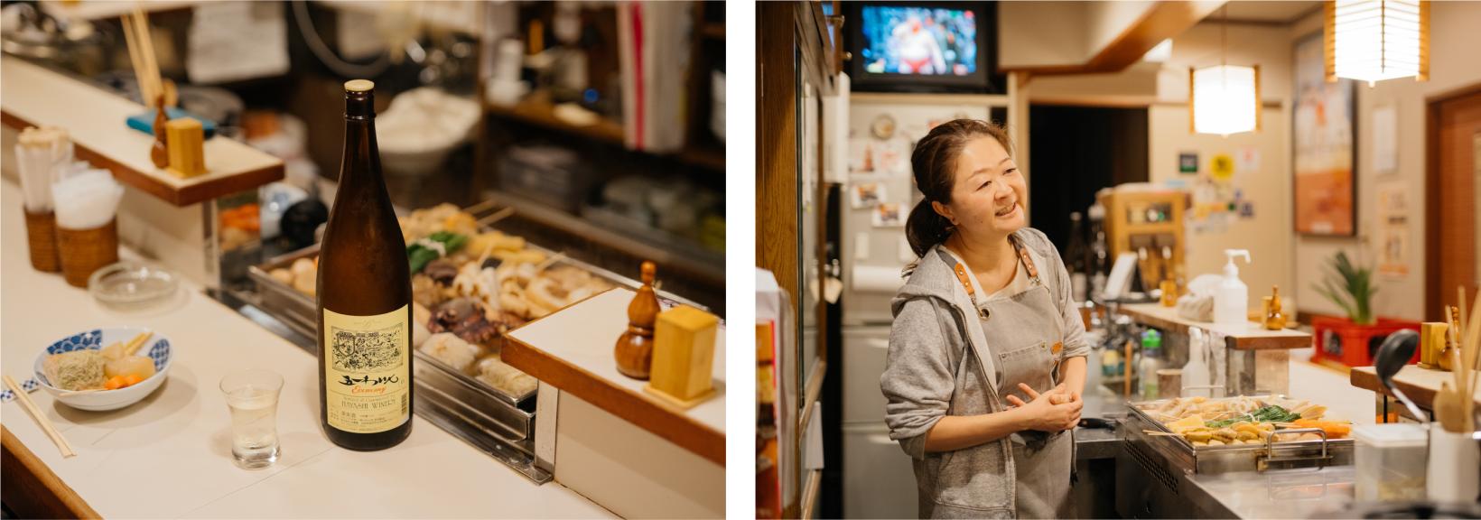 そして、ワインソムリエの恵子さんがセレクトした“おでんに合う白ワイン”が楽しめるのも「百福」の魅力。長野の「五一わいん」はフルーティーですごく飲みやすくて、大好きなワインのひとつです。
