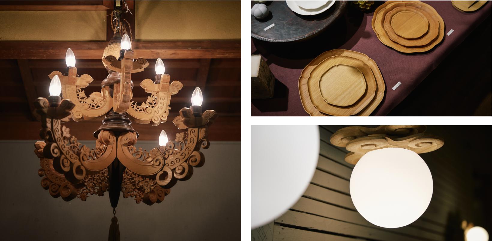 ショップギャラリー「季ノ実」には、器やアクセサリー、食品など、さまざまなジャンルの職人が集まる井波ならではのアイテムが充実しています。なかには、前出のレストラン「nomi」でも使用している「IPPA」の器や、「Bed and Craft」のチェックインラウンジに飾られている作家・前川大地さんの雲をモチーフにした井波彫刻の作品など、町のあちらこちらで目にした作品も。旅を終えた後も井波の風景を思い起こさせてくれるものばかりです。