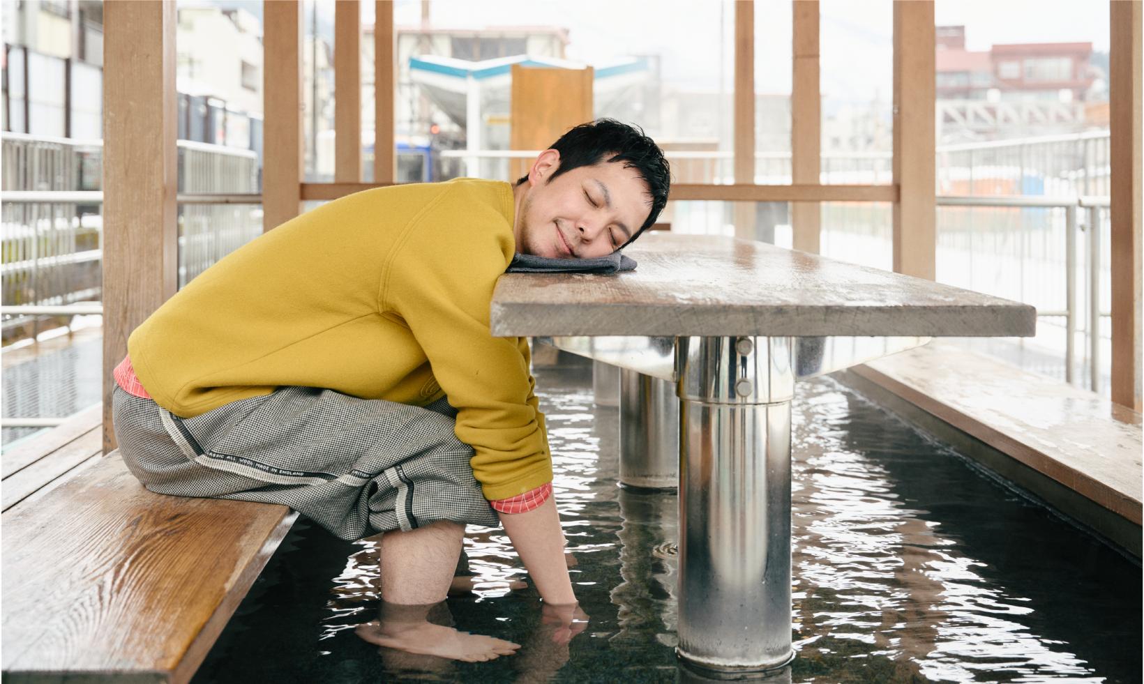 足湯は“脱力スタイル”で楽しむのがおすすめ。