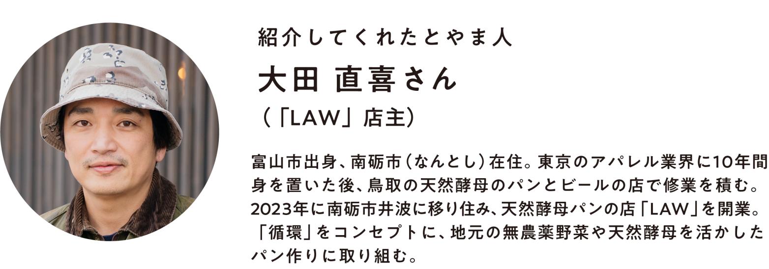 僕が井波でお店を始めた頃、「NAT.BREW」や同じく井波にあるコーヒー店「haiz coffee roastery」のように、ちょうど同じタイミングで移住してきた仲間がいるんです。お互いのお店を行き来しながら交流が広がるうちに、共通のお客さんも徐々に増えていきました。こうしたつながりを生かしながら、水も空気も澄んだ井波に根差した食品作りをすることで、まちの魅力発信になればうれしいなと思っています。