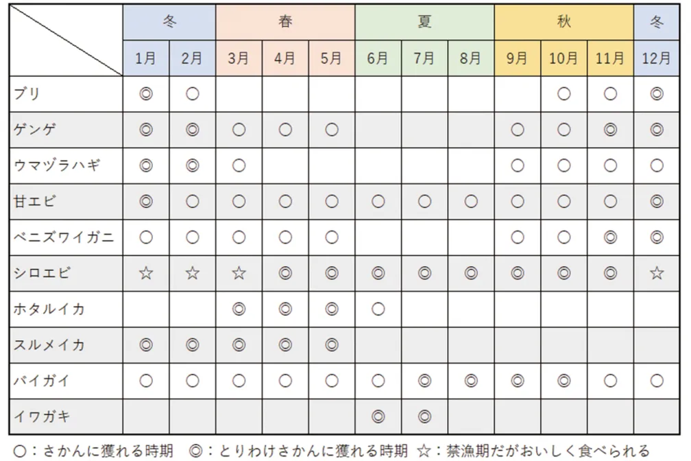富山の魚介の旬はいつ?四季のとやま魚介カレンダー