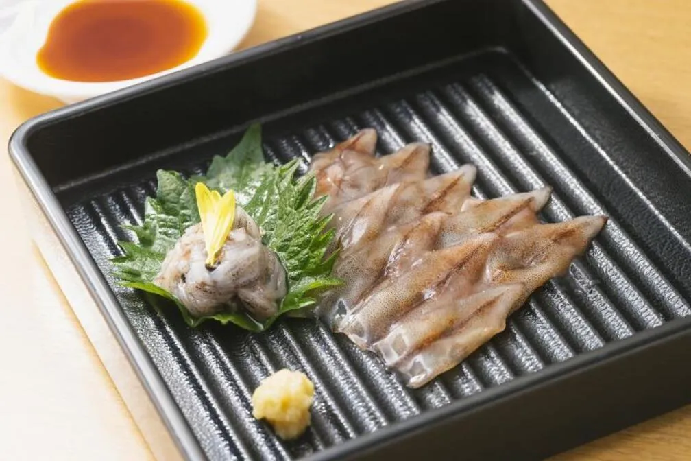 鮮度が命のホタルイカの刺身は、富山で味わうのが一番。旨みが凝縮された家庭の味「ホタルイカ酢味噌和え」やお酒のお供にぴったりな「ホタルイカの天ぷら」もおすすめです。海鮮料理店の他、宿泊施設や居酒屋でも食べられます。