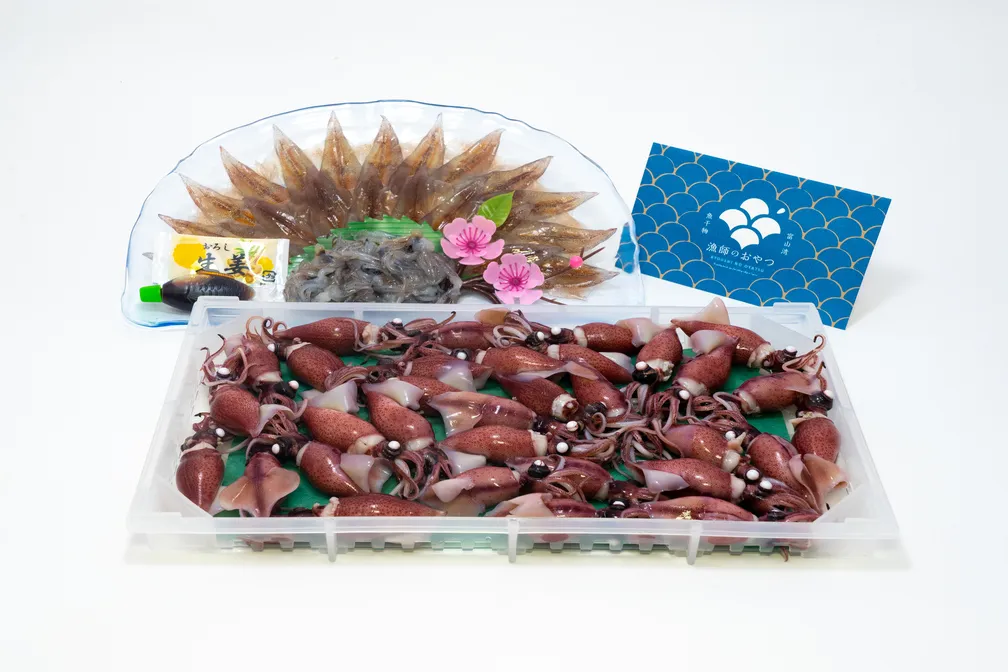 仕入れから製造、発送まで一貫して行う滑川市の「川村水産」。オンラインショップで、水産庁長官賞を受賞した釜あげや、農林水産大臣賞を獲得した沖漬けなど、自慢のホタルイカ商品を購入できます。